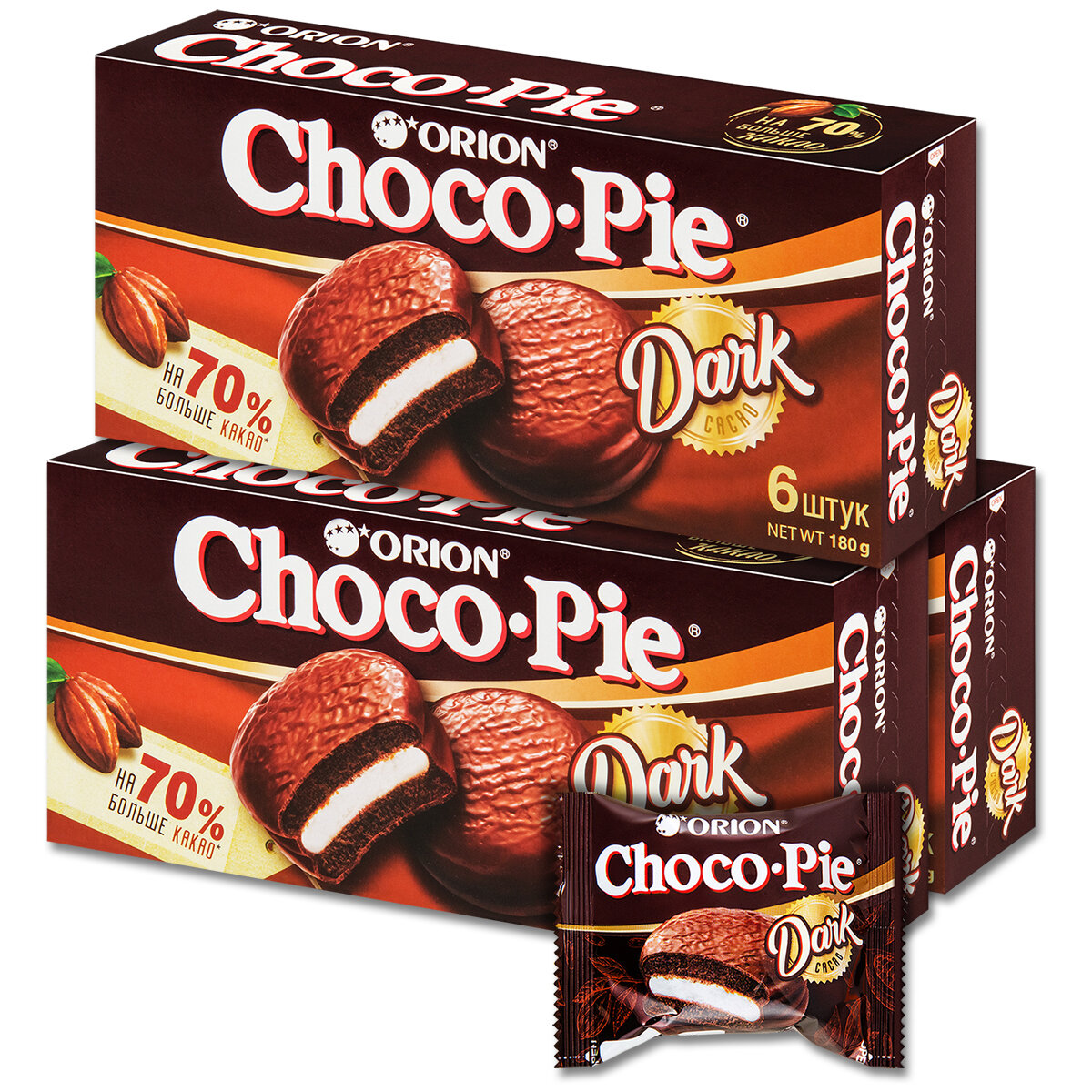 10 цен на Пирожное Чоко Пай бисквитное ORION Choco Pie Dark 6 шт, 180 г, 3 уп.