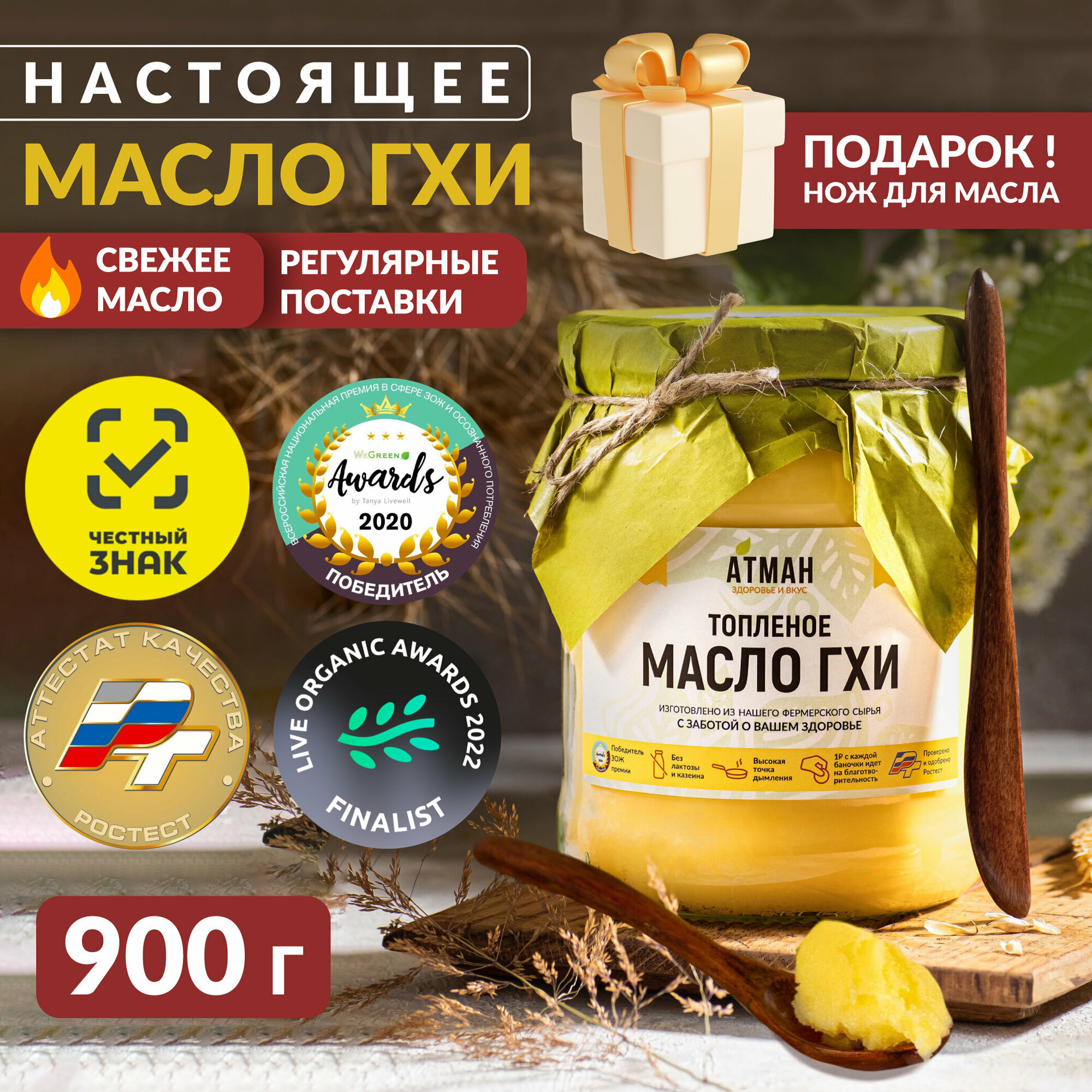 Отзывы на Топленое масло АТМАН, натуральное, диетическое, без сахара, 99% жирности, стеклянная банка