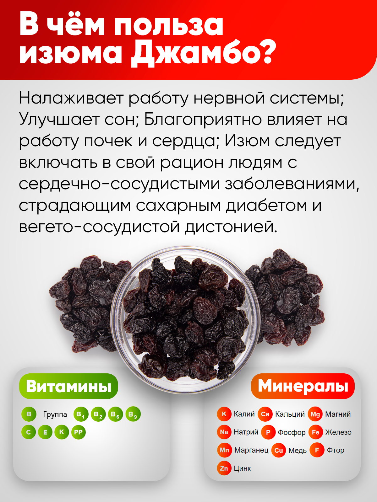 Изюм ДЖАМБО флейм 1000гр, Изюм крупный - без косточки Narmak информация: