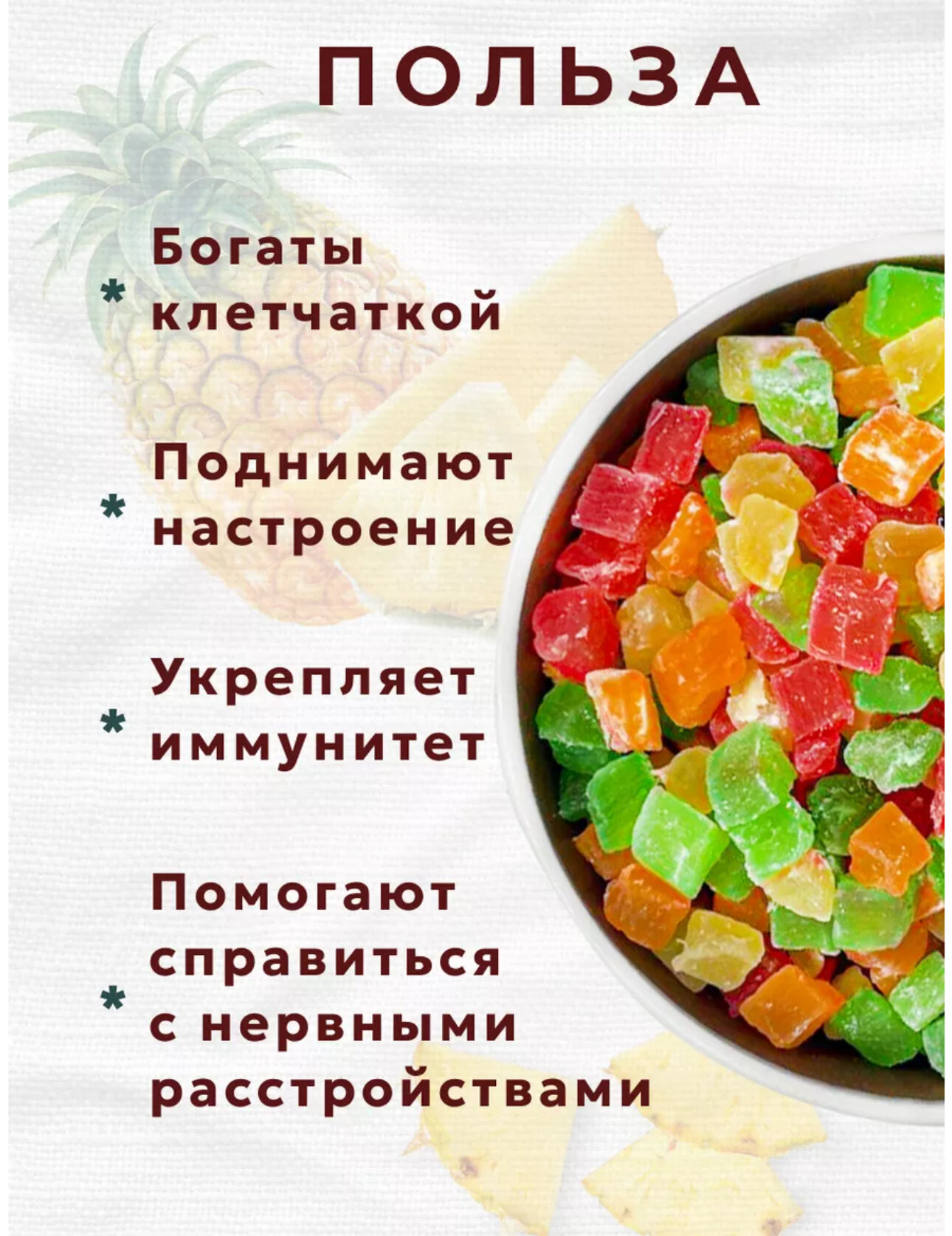 10 цен на Цукаты ананаса кубики ассорти 500гр. в подарочной упаковке, для пасхи, куличей