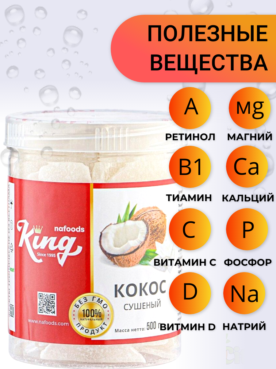 Кокос сушеный King 500гр/ Кокос сушеный натуральный/Ореховый Городок информация:
