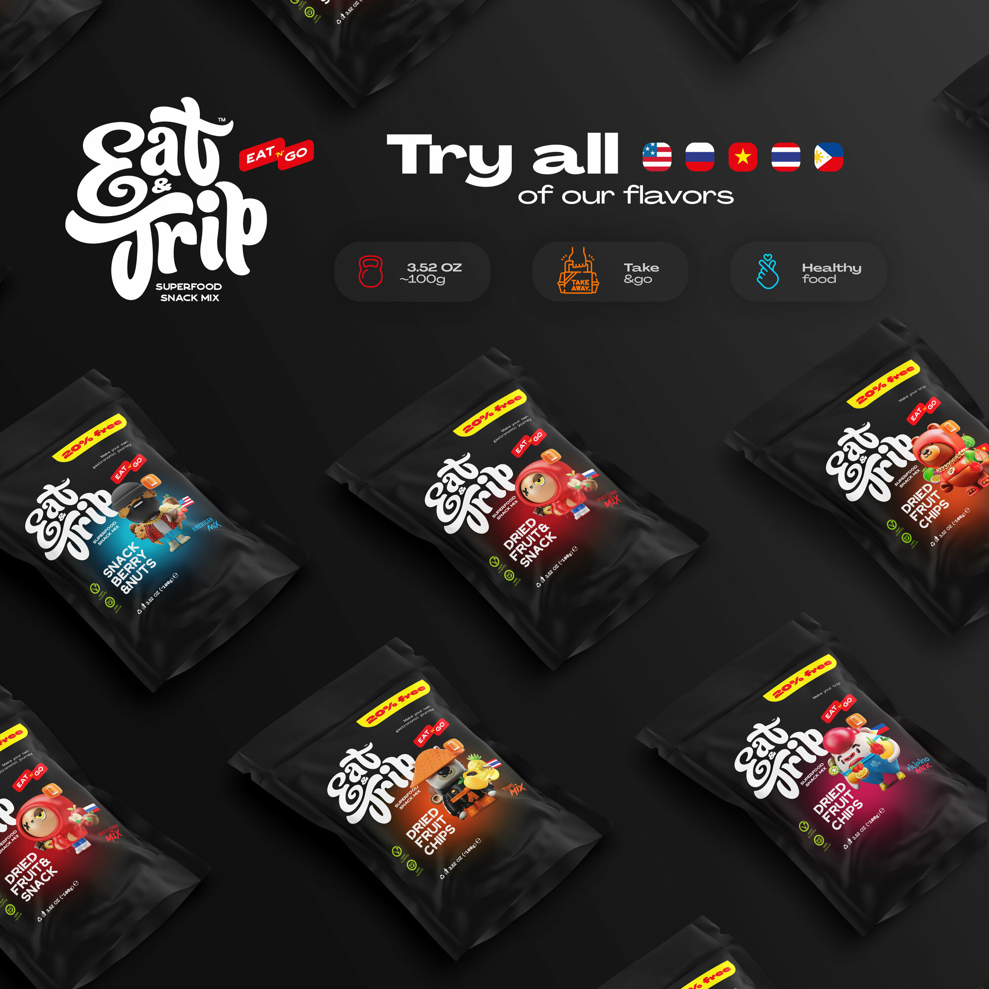Набор из тропических сухофруктов (сушеные) Eat&Trip "Вьетнамский" помело гуава питахайя анона маракуйя. Смесь. Микс. Снеки. Dried fruits mix "Vietnam" информация: