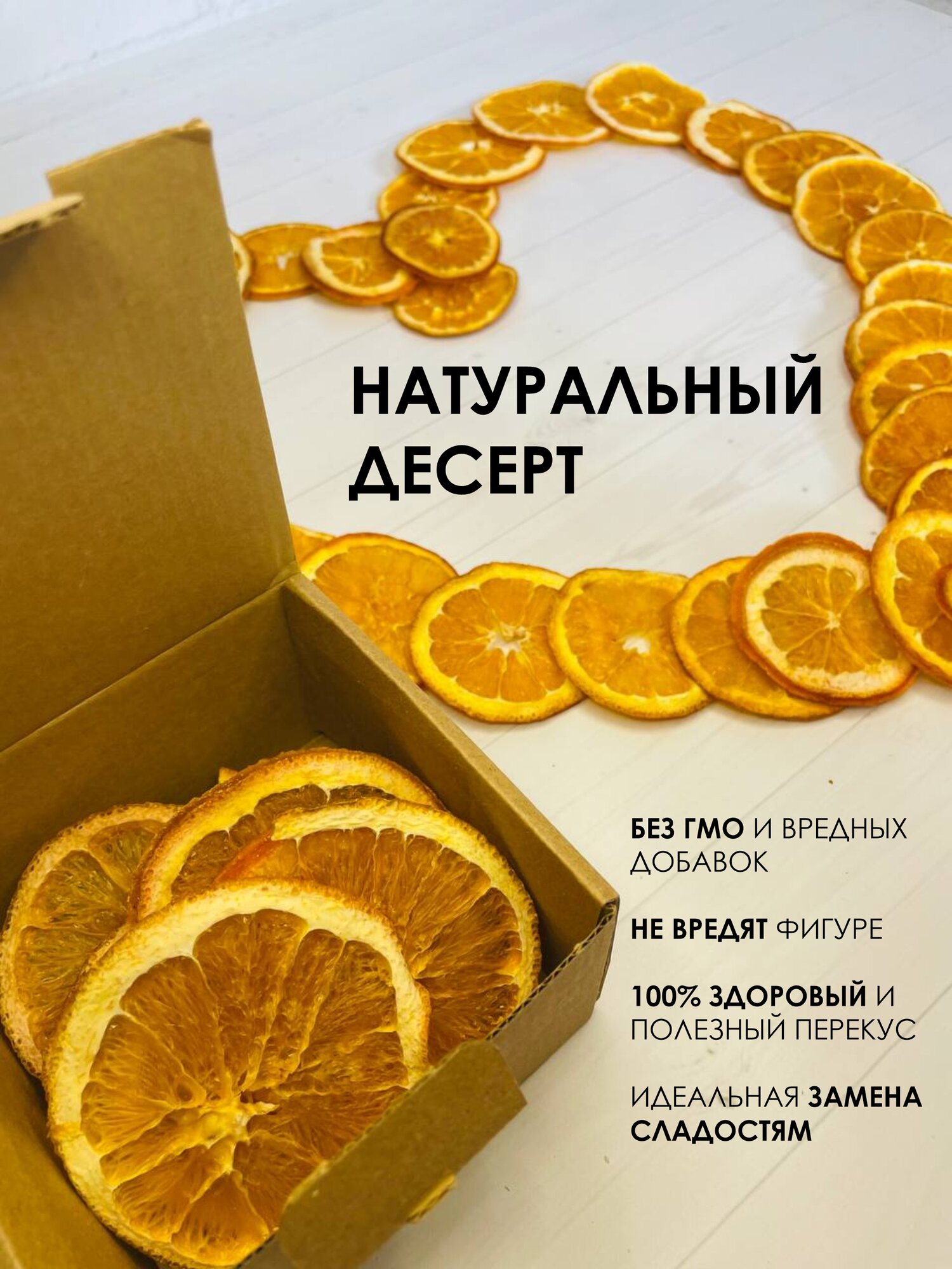 10 цен на Апельсин сушеный без сахара, сухофрукты, фруктовые чипсы, слайсы снеки в чай и пп питание 50 гр