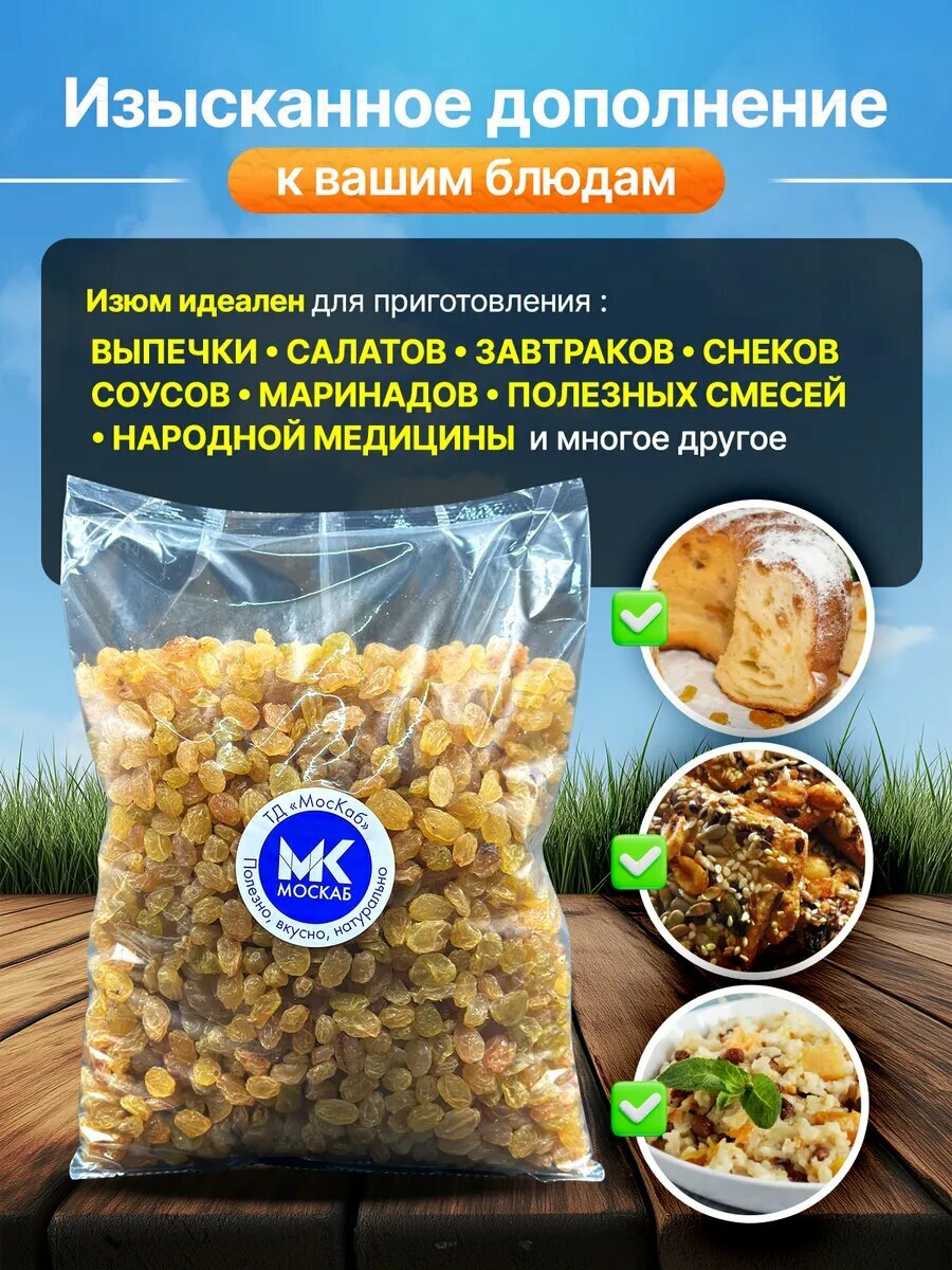 Характиристики этого товара не найдены!Отзывы на Изюм МОСКАБ Голден, отборный, без косточек, светлый, натуральный, 1 кг