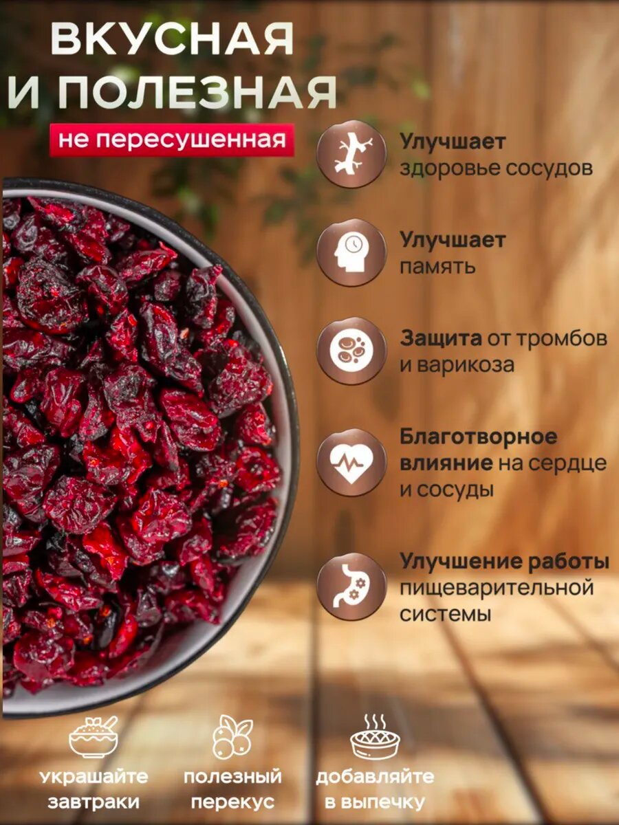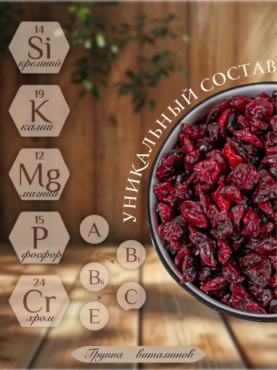 Вяленая клюква Royal Nuts, без ГМО и красителей, 100% натуральный продукт, 500г информация: