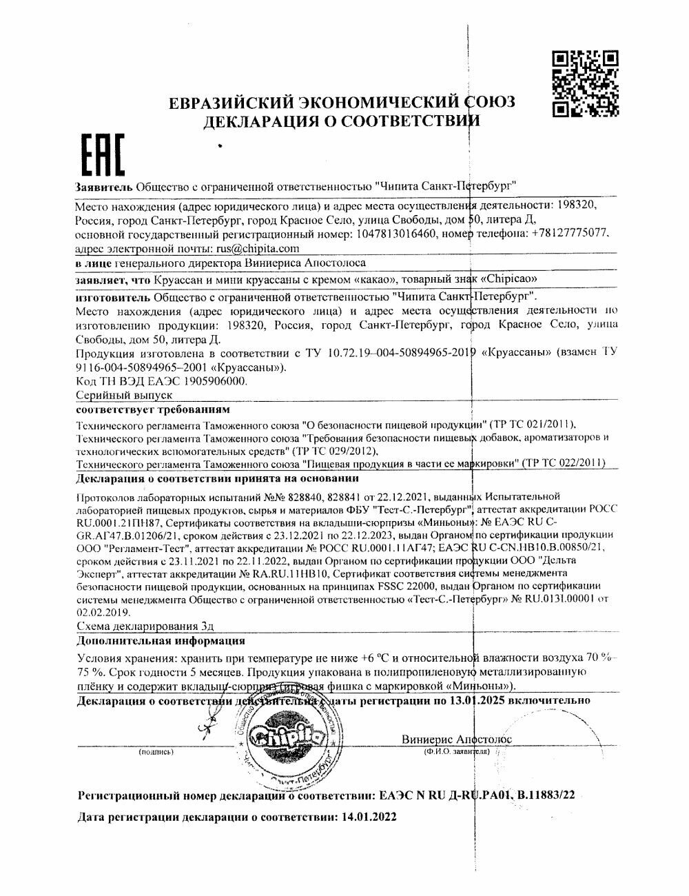 Круассаны Chipicao мини c кремом какао, 50 г x 6 шт. информация: