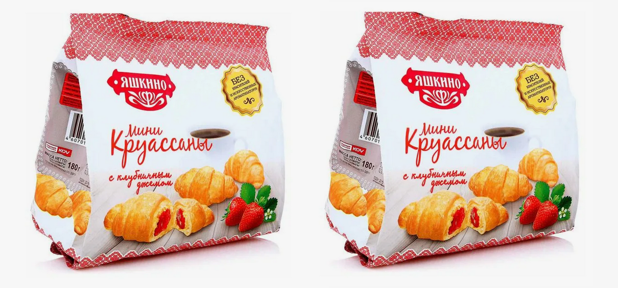 Характиристики этого товара не найдены!Отзывы на Круассаны Яшкино мини, с клубничным джемом, 180 гр - 2 упаковки