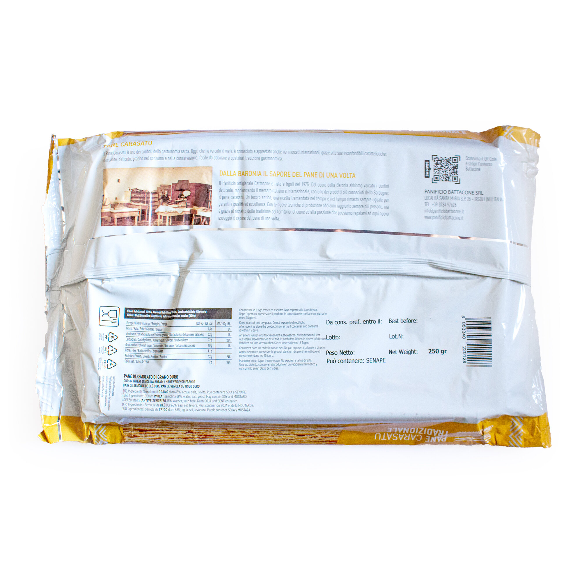 Хлеб Карасату Традиционный, сардинский слоеный хрустящий хлеб, PANIFICIO BATTACONE, 0,250 гр (пласт/ван с крышкой) информация: