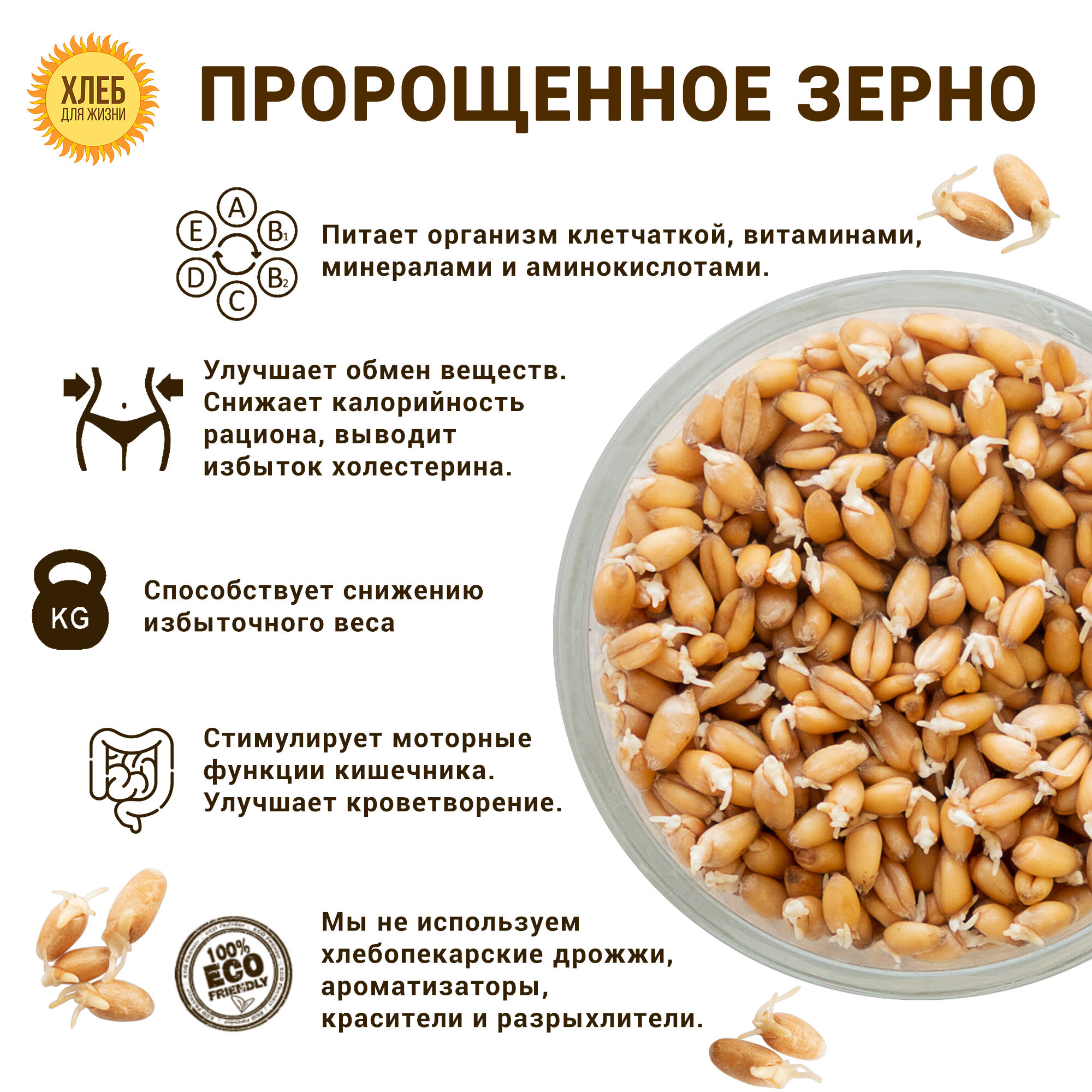 10 цен на (1х350г) Хлеб Пшеничный очищающий, цельнозерновой, бездрожжевой, на закваске - Хлеб для Жизни