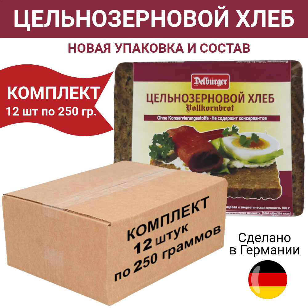 Хлеб Delburger цельнозерновой, комплект 12 шт по 250 грамм информация: