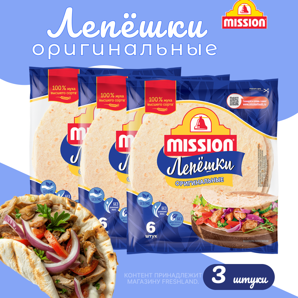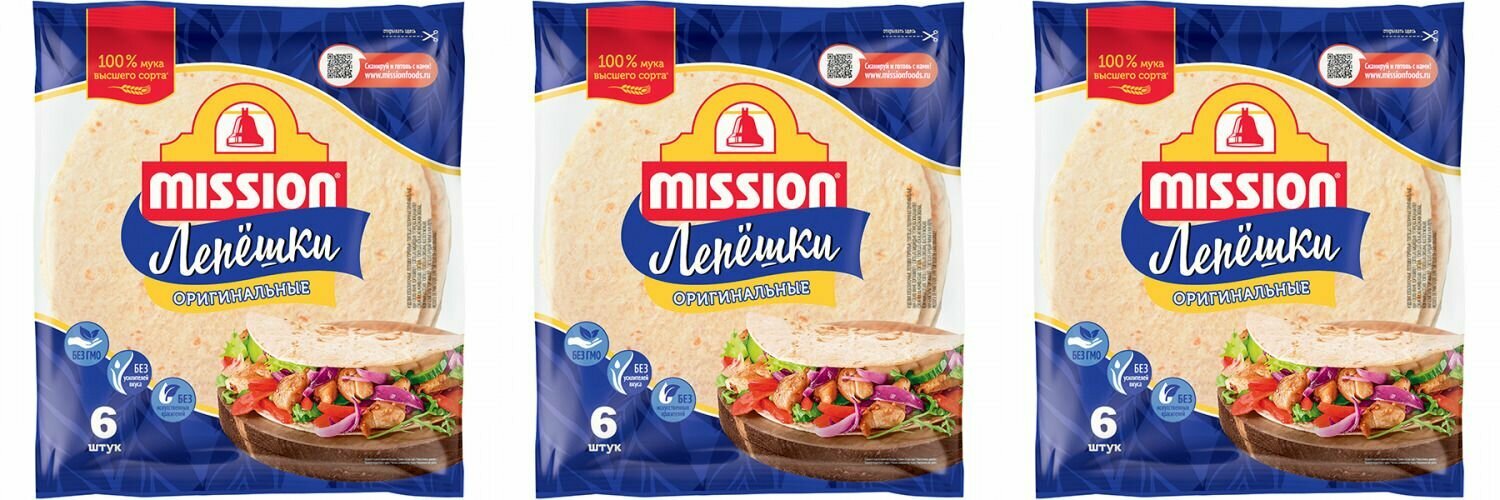Лепешки пшеничные Mission Оригинальные, 20 см, 6 шт, 250 г, 3 уп информация:
