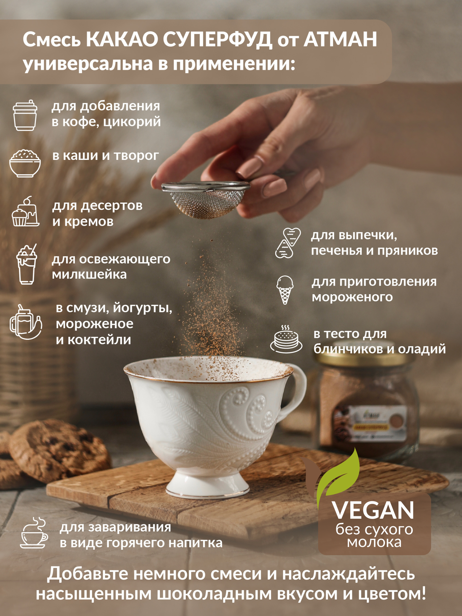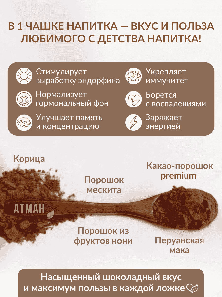 10 цен на Какао Суперфуд натуральный, нони, корица, мака перуанская ПП продукты АТМАН 40 гр, АТМАН