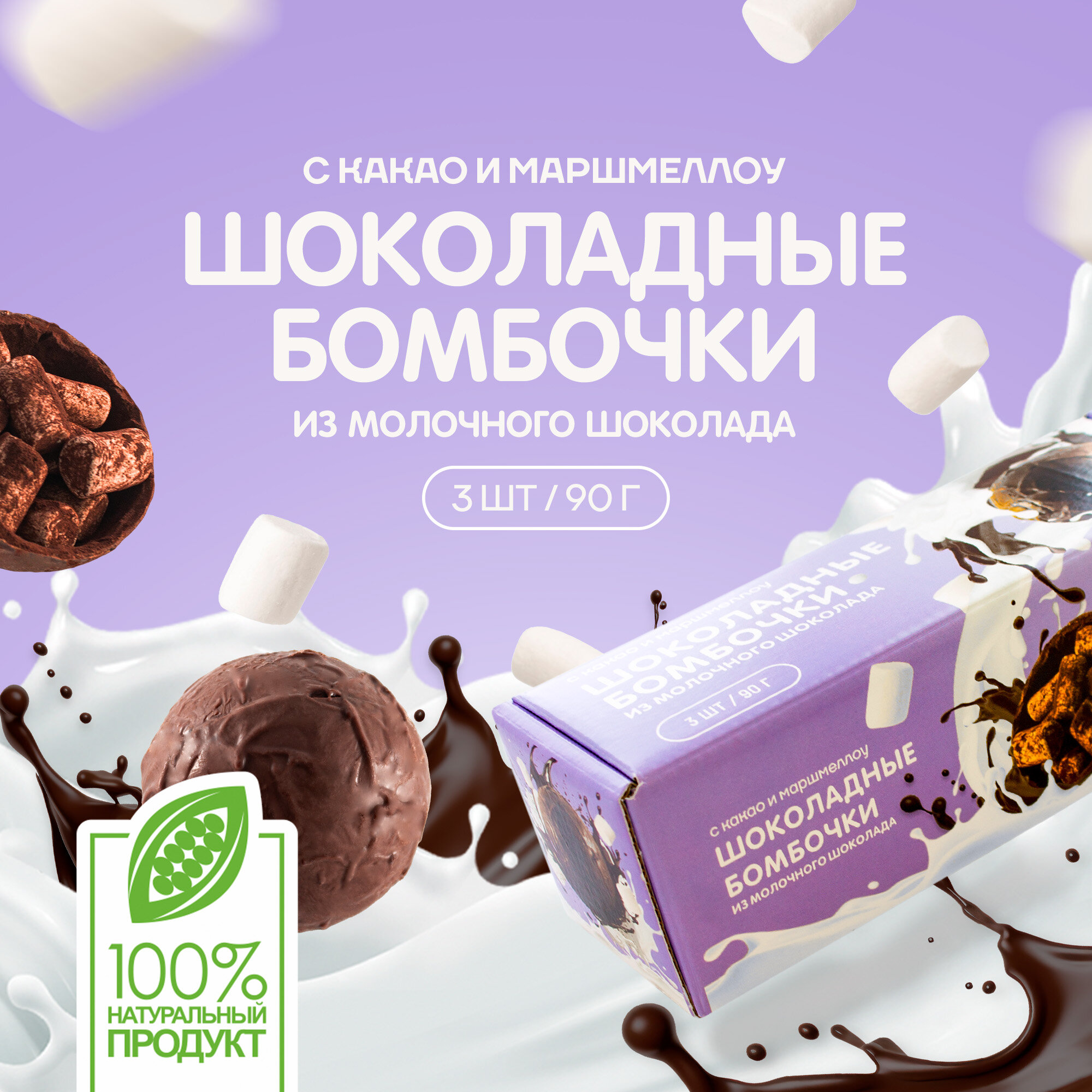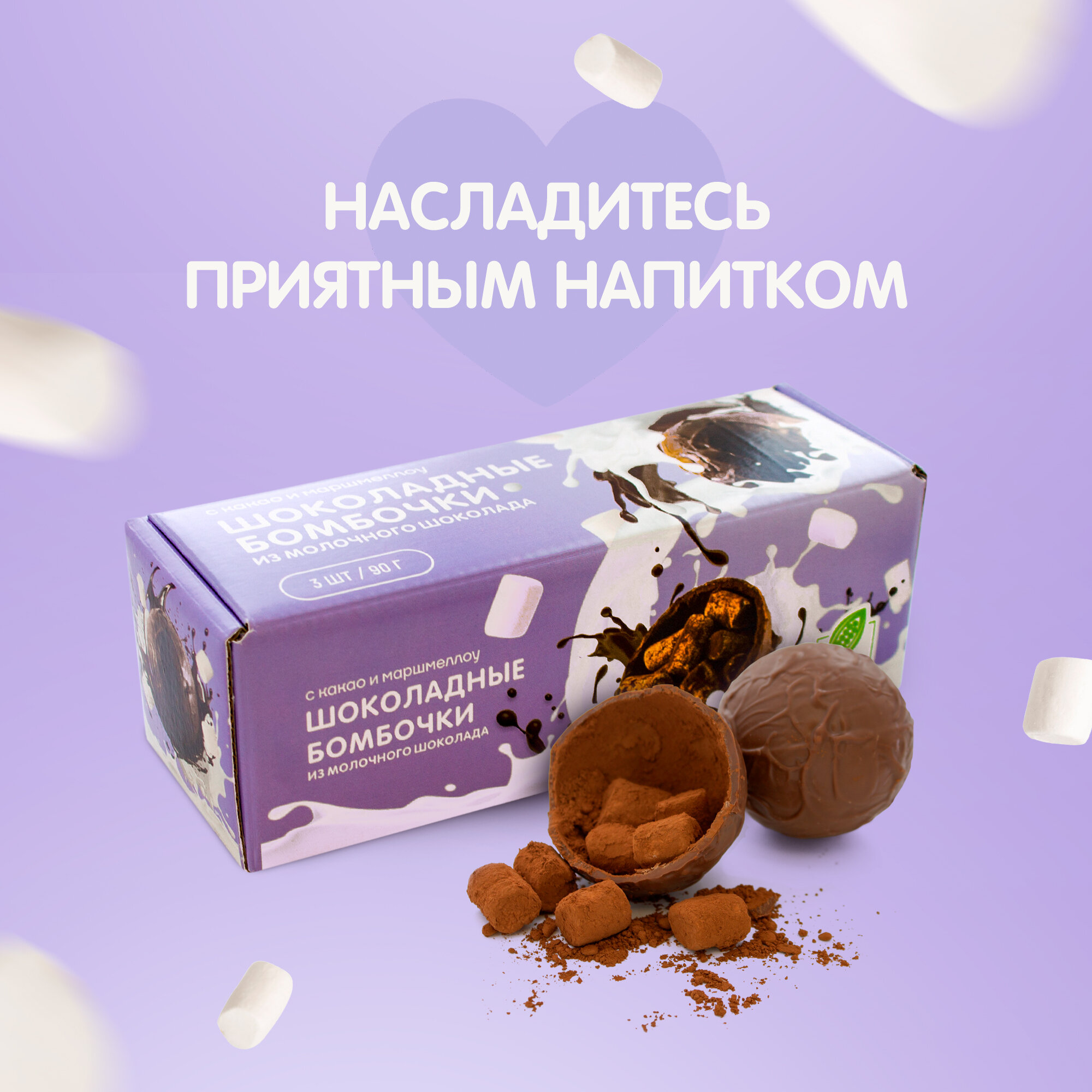 Шоколадные бомбочки Шоко. ru с маршмеллоу, 3 штуки в упаковке информация: