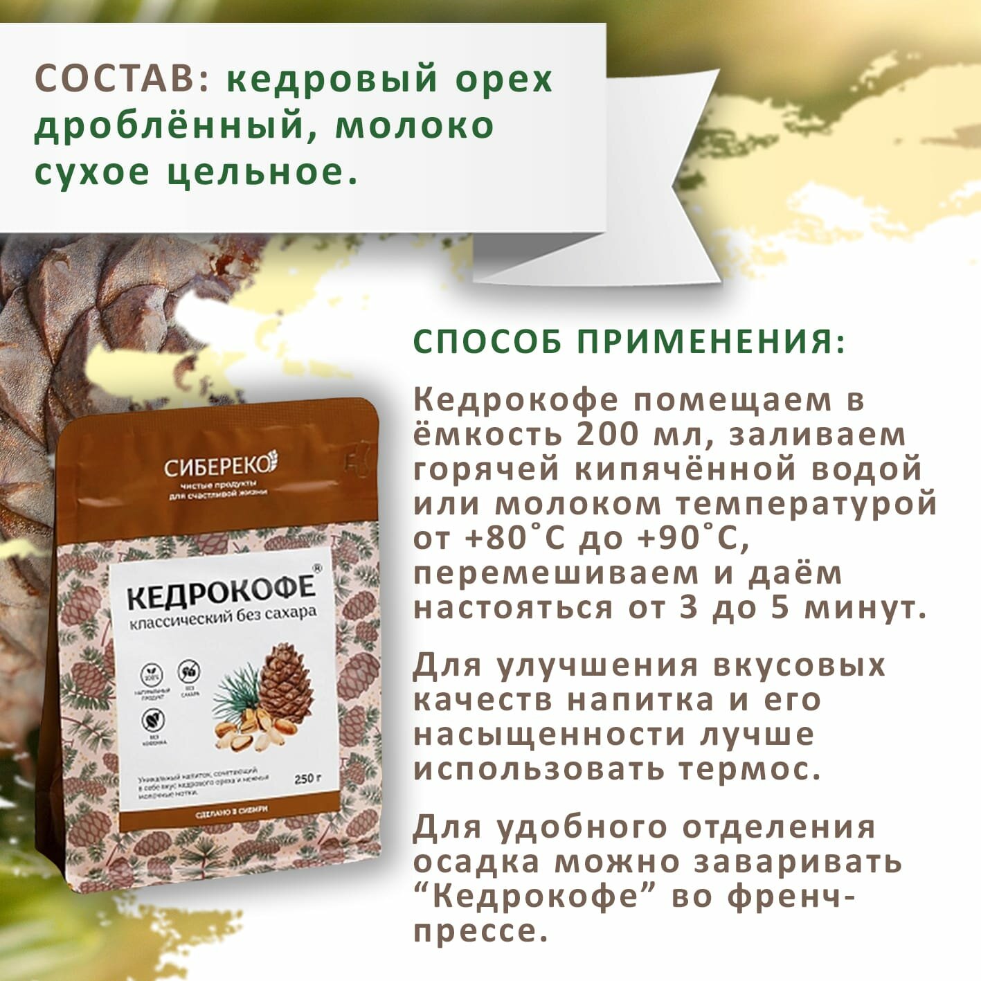 Кедрокофе Классический 250г ООО "Сибереко", г. Томск- 2 шт информация: