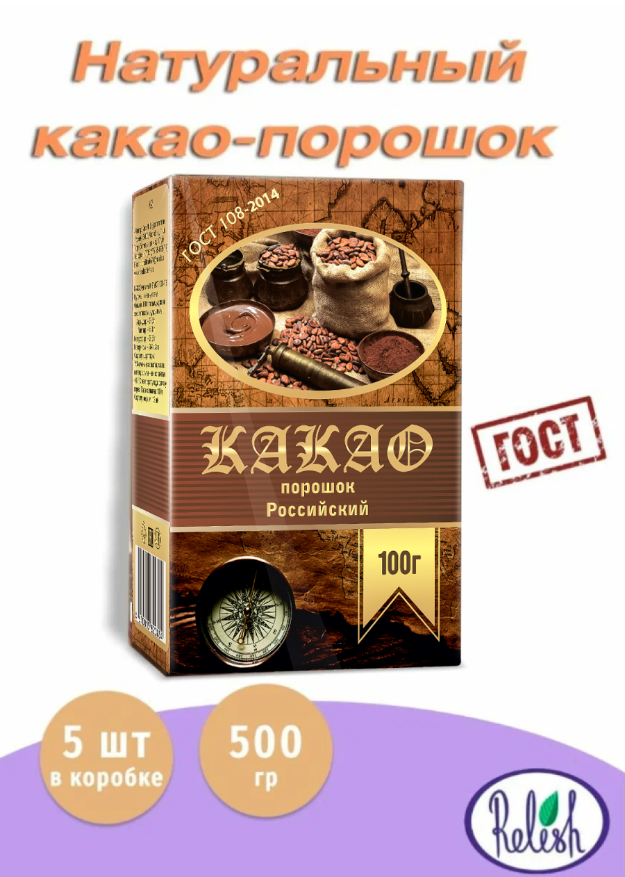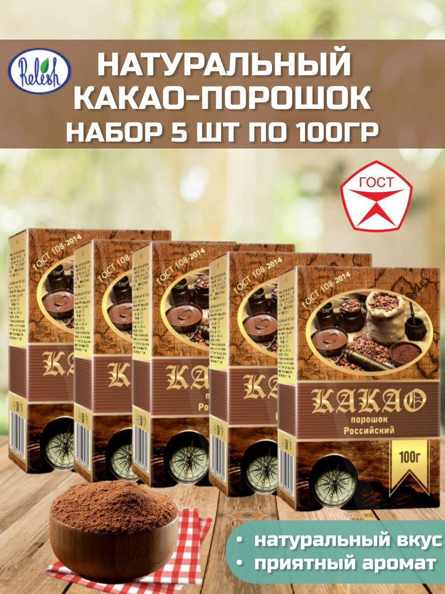 10 цен на Какао порошок натуральный ГОСТ Relish 5 упаковок по 100 грамм
