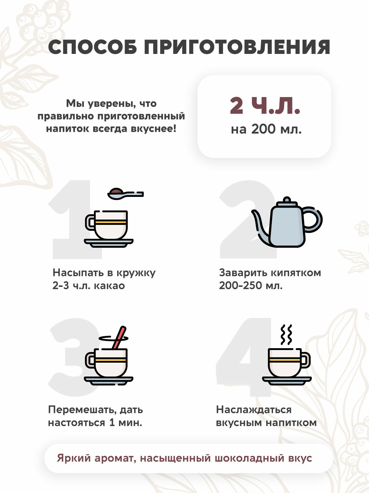 Напиток Какао порошок натуральный растворимый, без сахара и подсластителей, без лактозы, веган, 550 г информация: