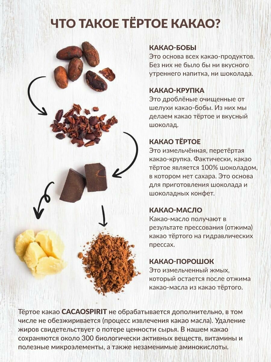 Какао тертое натуральное Криолло из венесуэлы / Здоровое питание / Церемониальное какао без сахара 250 г информация:
