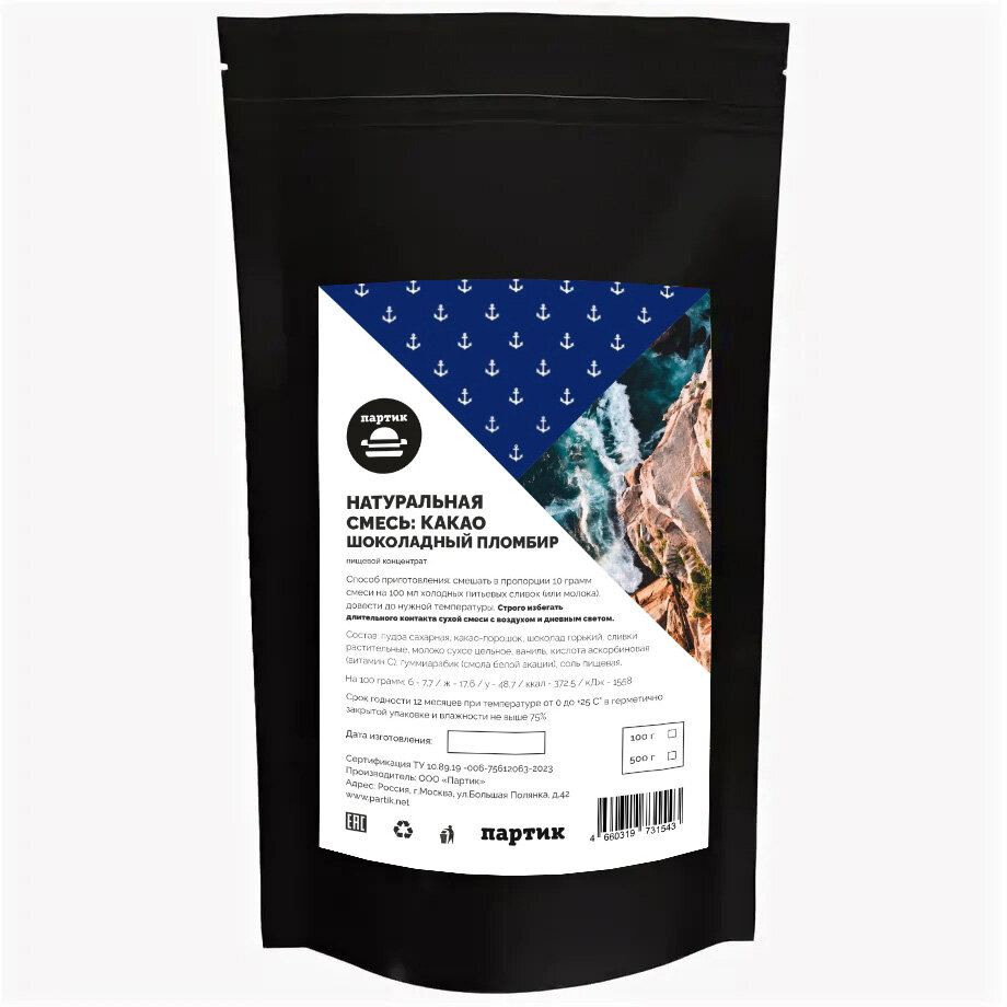 Натуральная смесь: какао шоколадный пломбир 100 грамм информация: