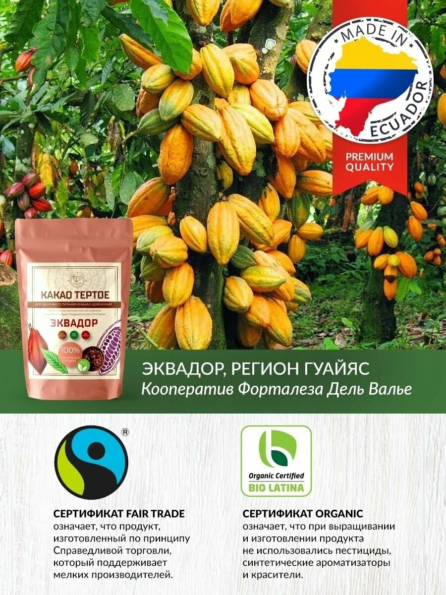 Какао тертое натуральное Криолло из эквадора / Здоровое питание / Церемониальное какао без сахара 500 г информация: