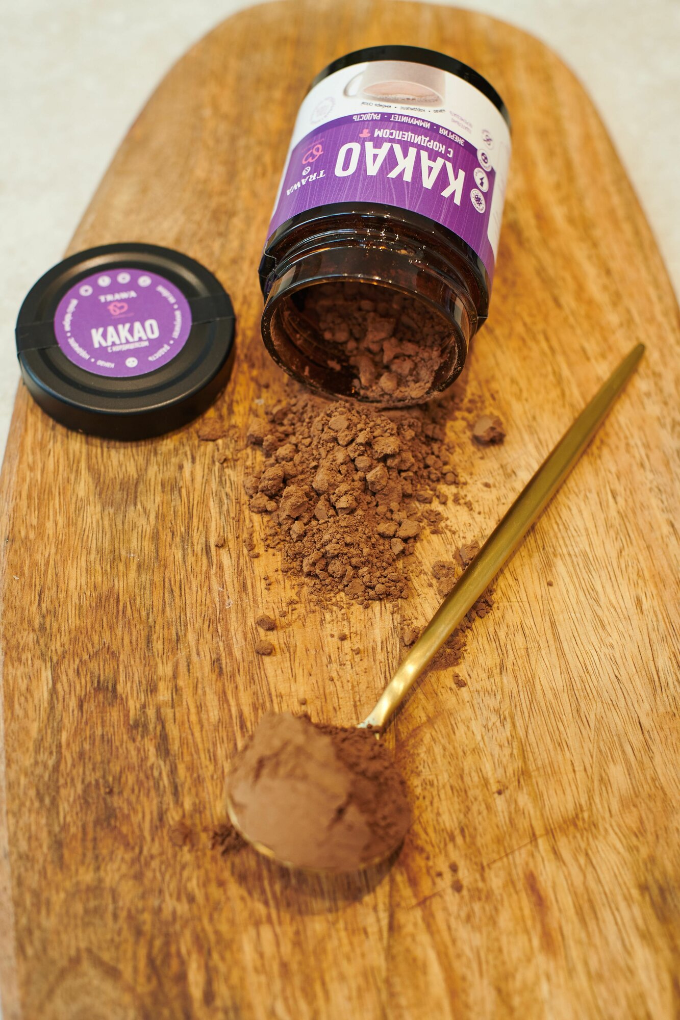 TRAWA Какао с кордицепсом и имбирём 100 гр / Натуральный какао-порошок неалкализованный / Подарок на праздники информация: