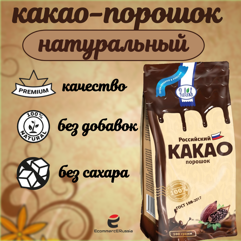 Какао-порошок Relish, натуральный, российский, ГОСТ, 100 г, 1 шт информация: