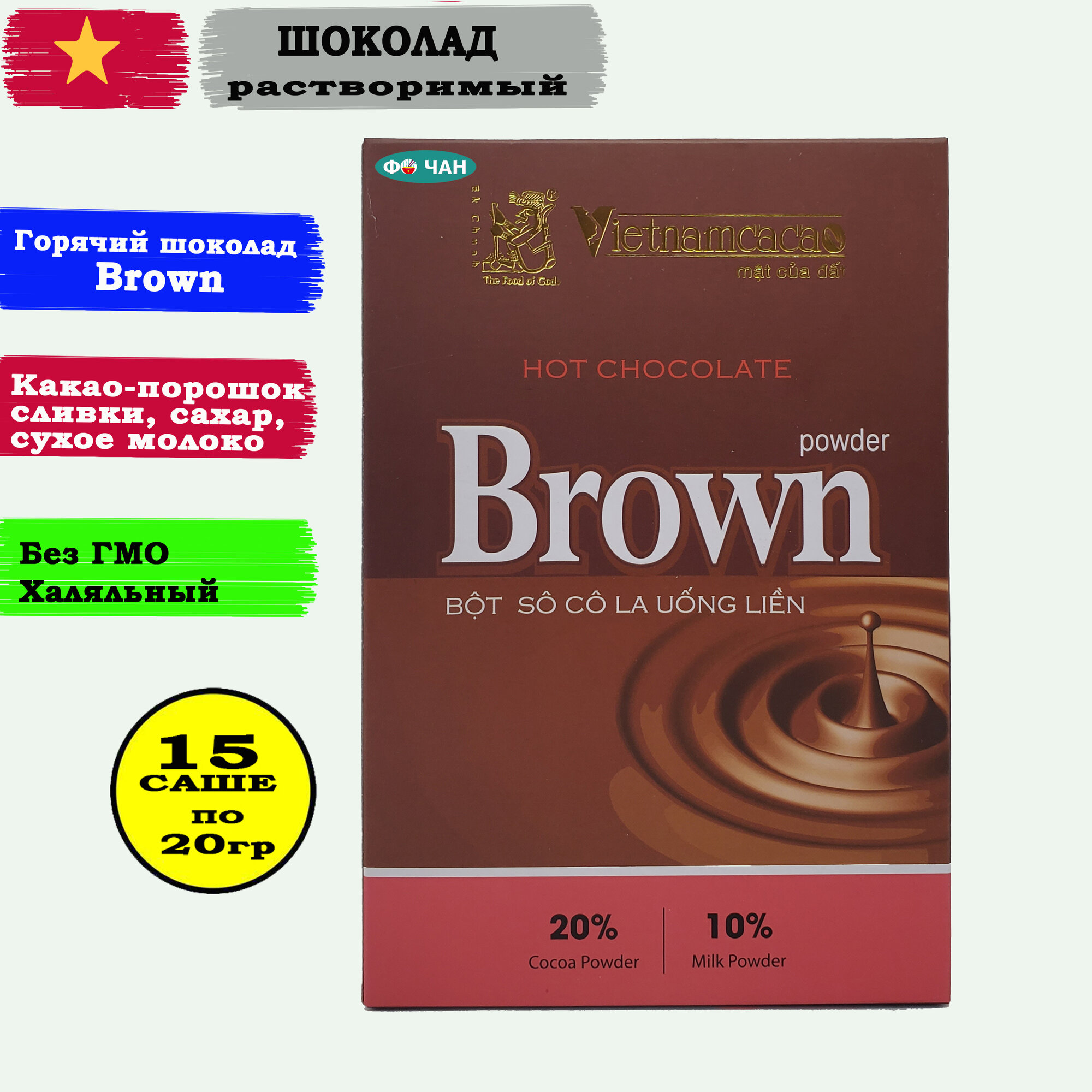 Горячий шоколад Вьетнам "Brown", 15 саше по 20гр информация: