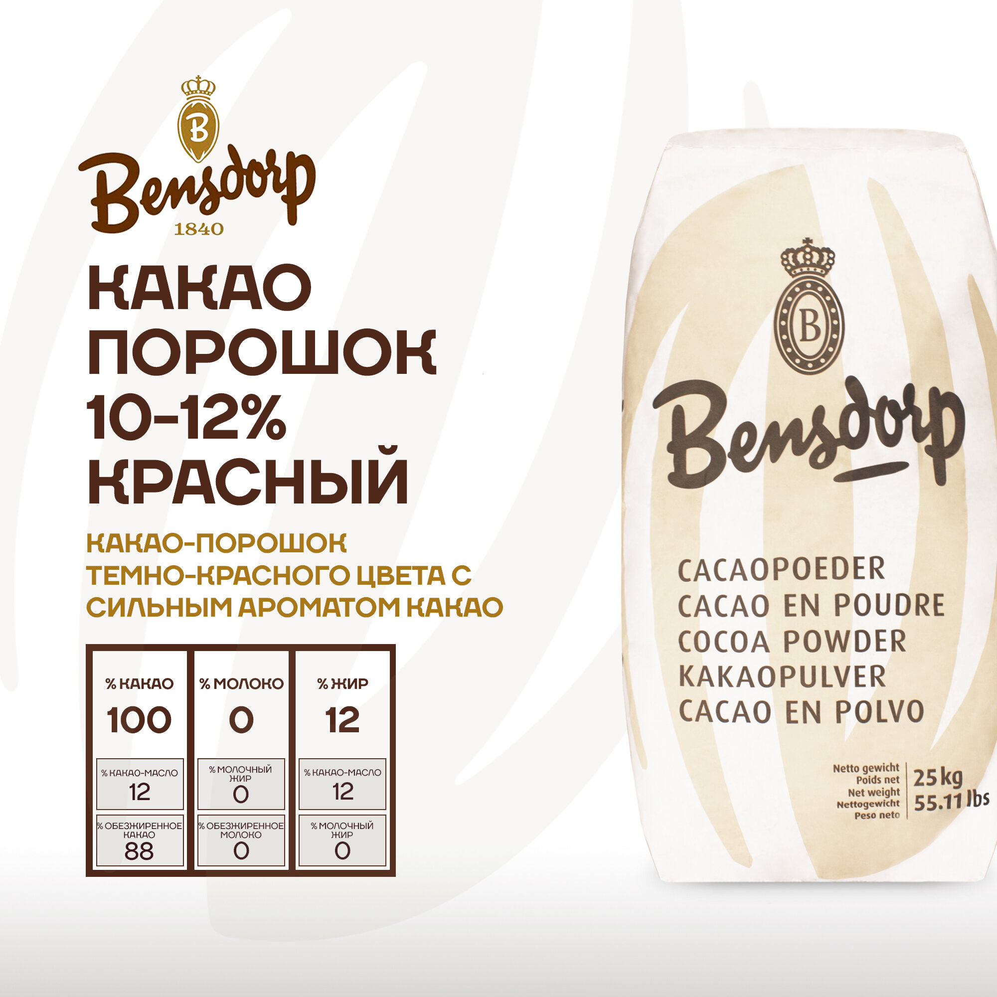 Какао порошок Bensdorp алкализованный 10-12% красный, 25 кг информация: