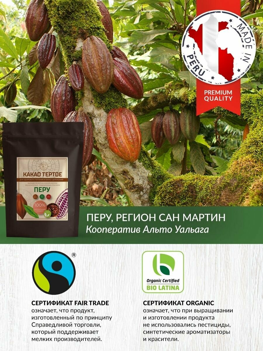 10 цен на Какао тертое натуральное Криолло из перу / Здоровое питание / Церемониальное какао без сахара 42 г (1 порция)