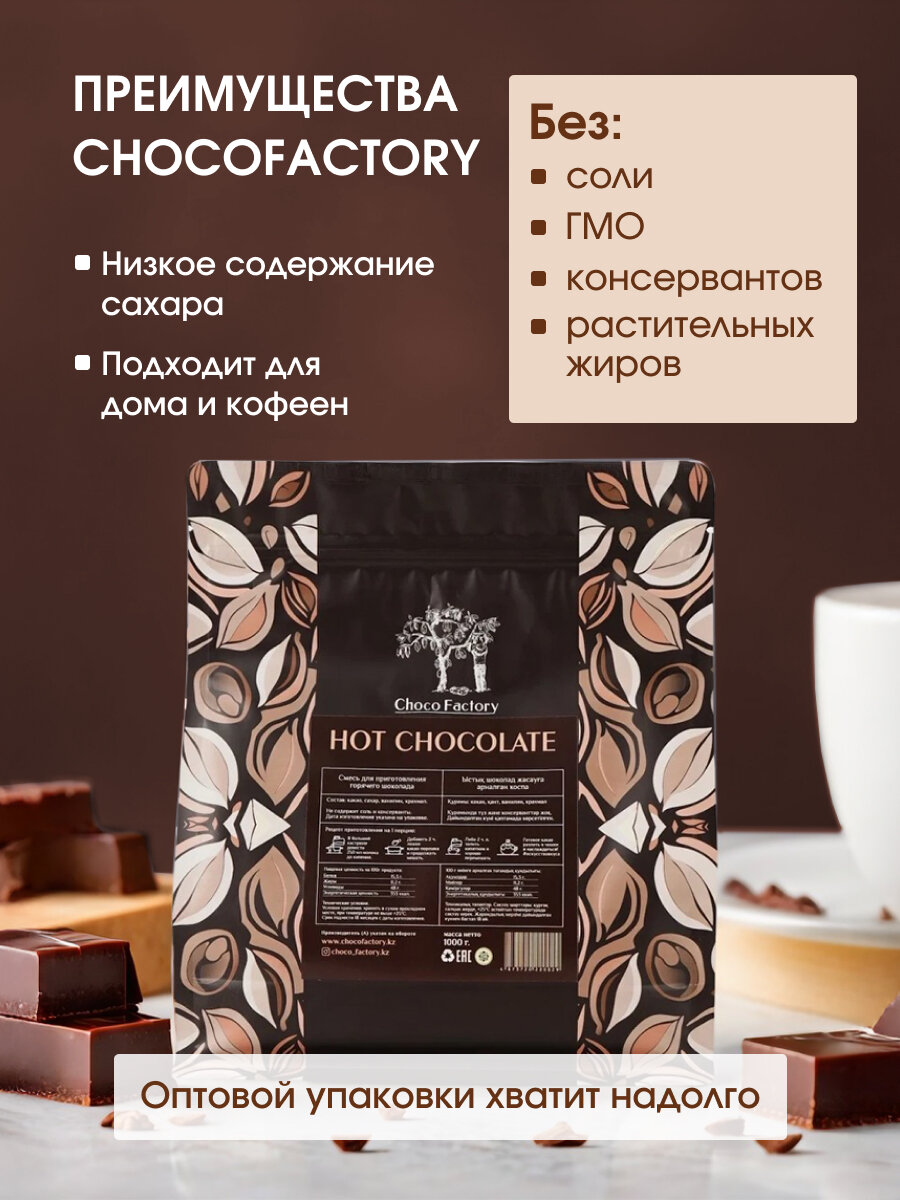 10 цен на Горячий шоколад CHOCOFACTORY 45% какао пакет 1 кг, proffesional pack 6 шт по 1 кг
