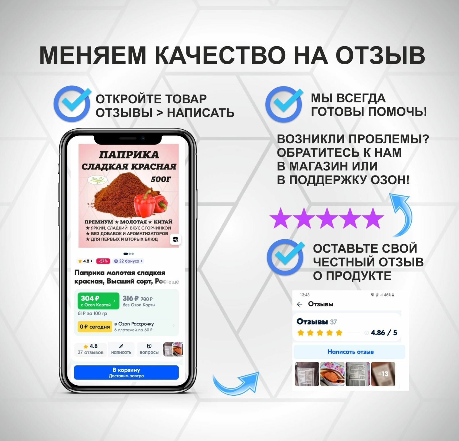 Пишите отзывы на товары