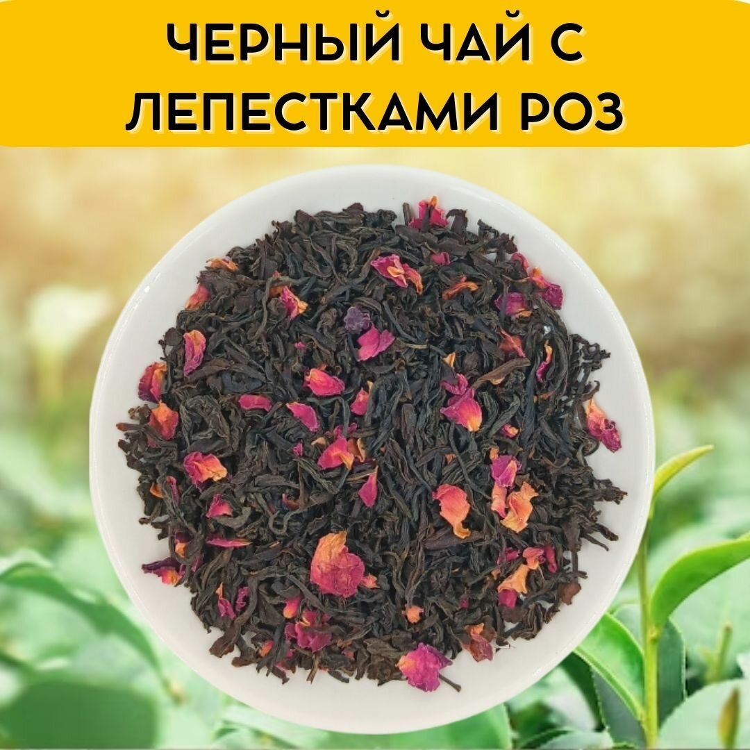 10 цен на Чай листовой черный c лепестками роз. Индийский крупнолистовой чай с розой 100 гр.