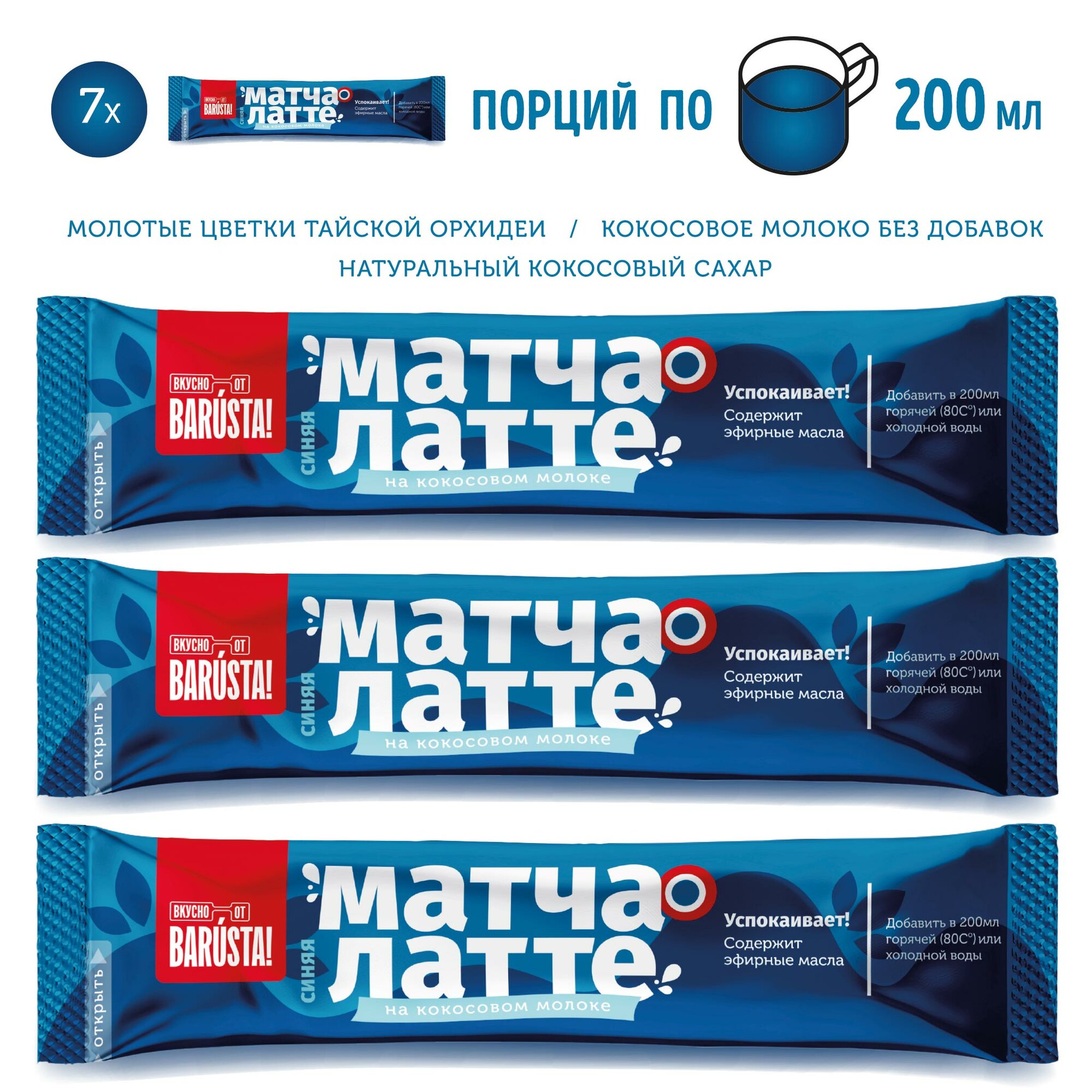 10 цен на Синяя матча латте BARUSTA! на кокосовом молоке, чай анчан растворимый, натуральный состав, 140г (20г х 7 стиков)