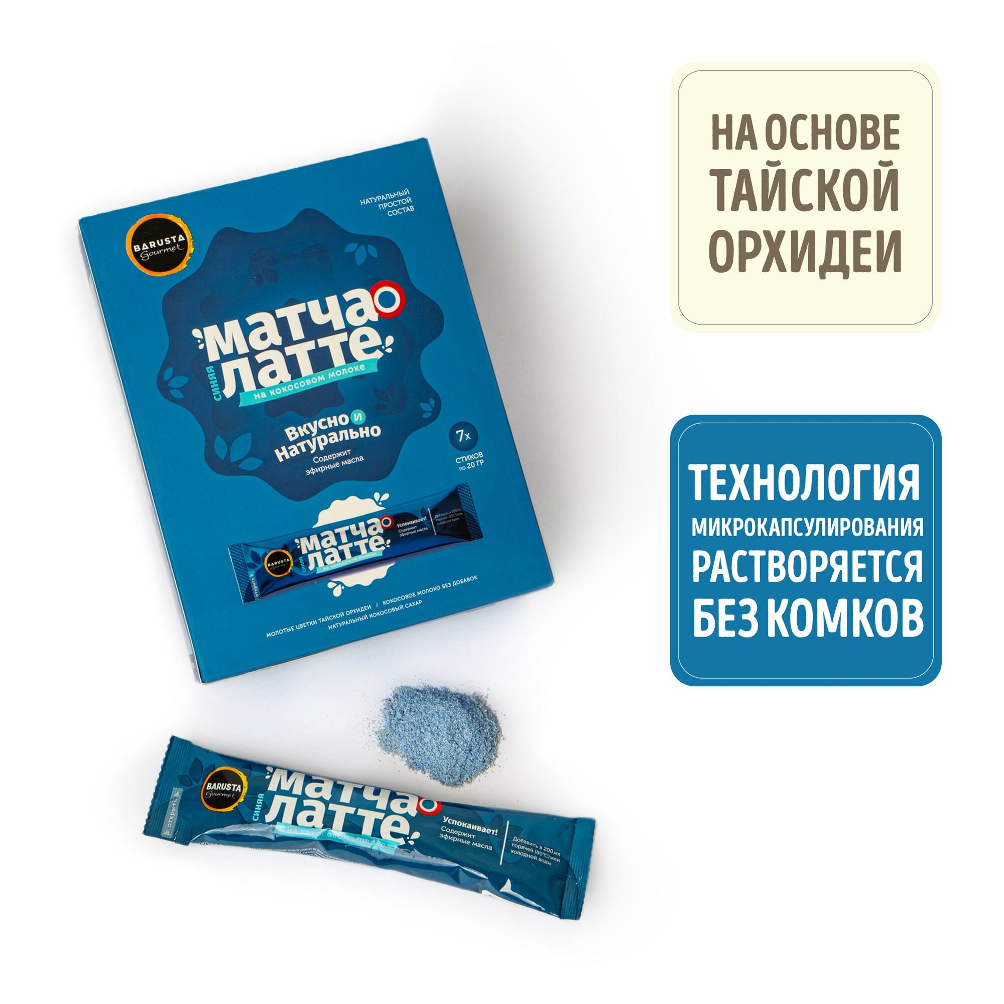 Синяя матча латте BARUSTA! на кокосовом молоке, чай анчан растворимый, натуральный состав, 140г (20г х 7 стиков) информация:
