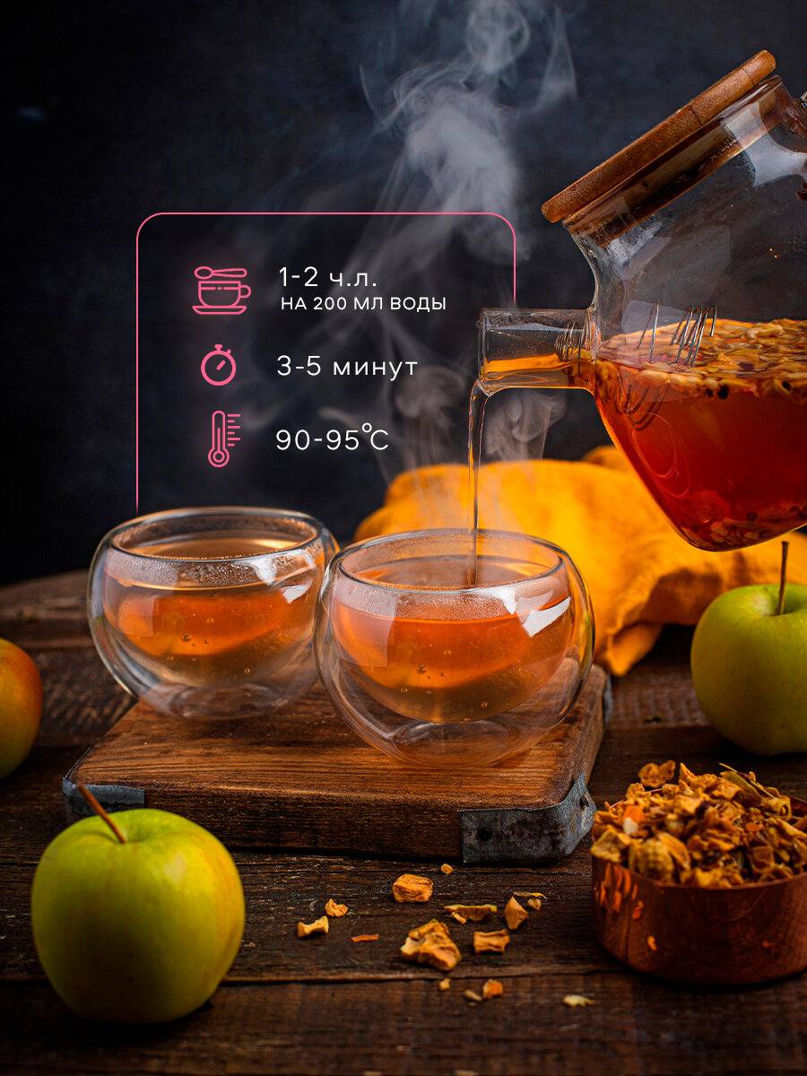 10 цен на Чай турецкий травяной Спайсория "Дикое яблоко" с кусочками яблок, корицей, кубиками ананаса и имбирем, 200 г
