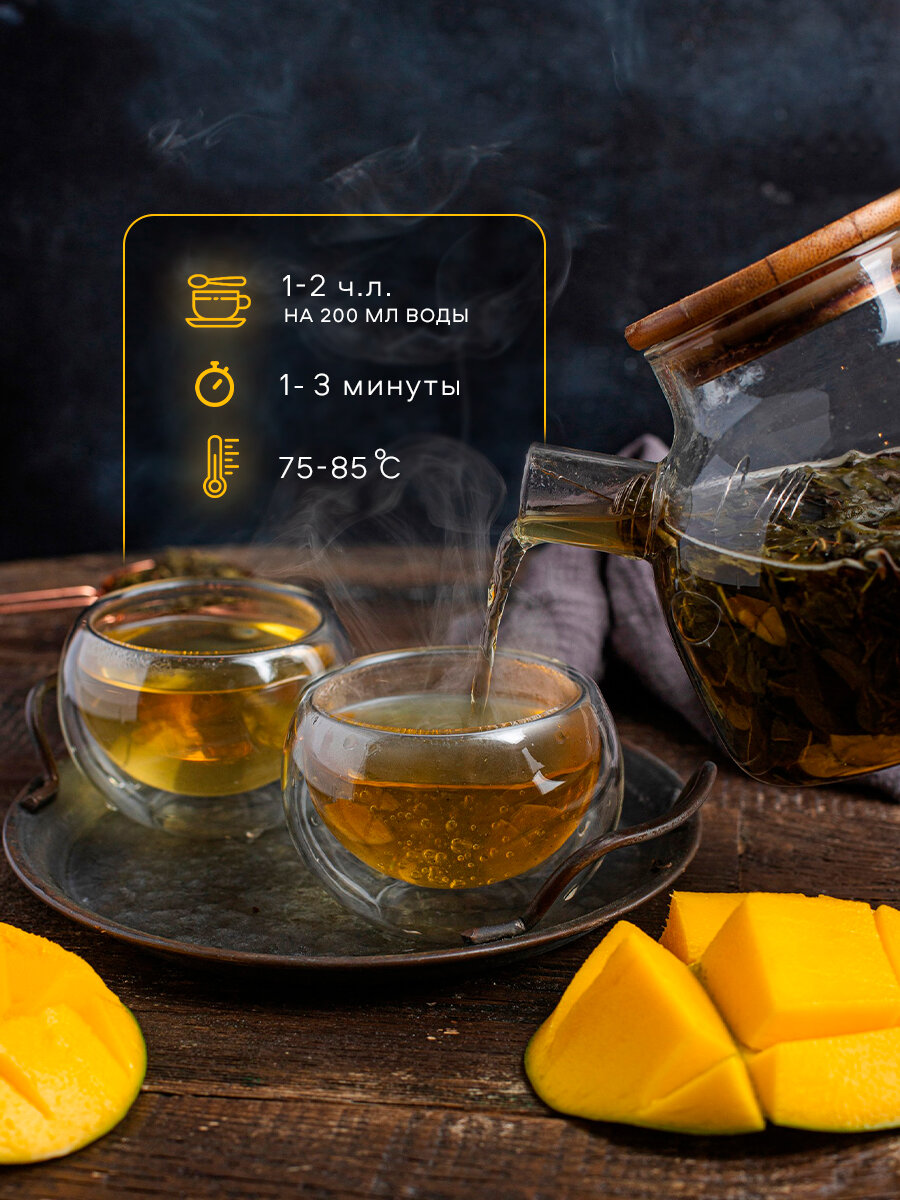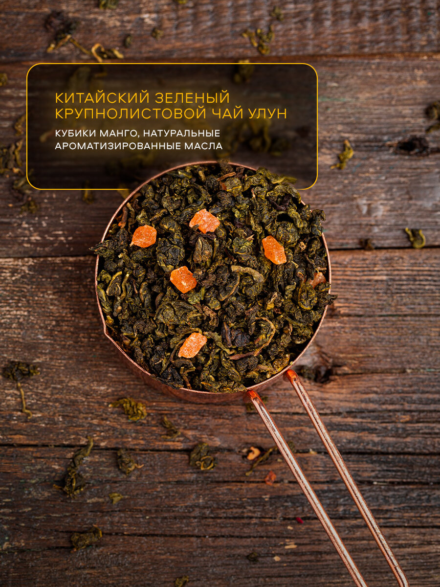 10 цен на Чай китайский зеленый листовой Спайсория "Манговый улун" с кубиками манго, 200г.