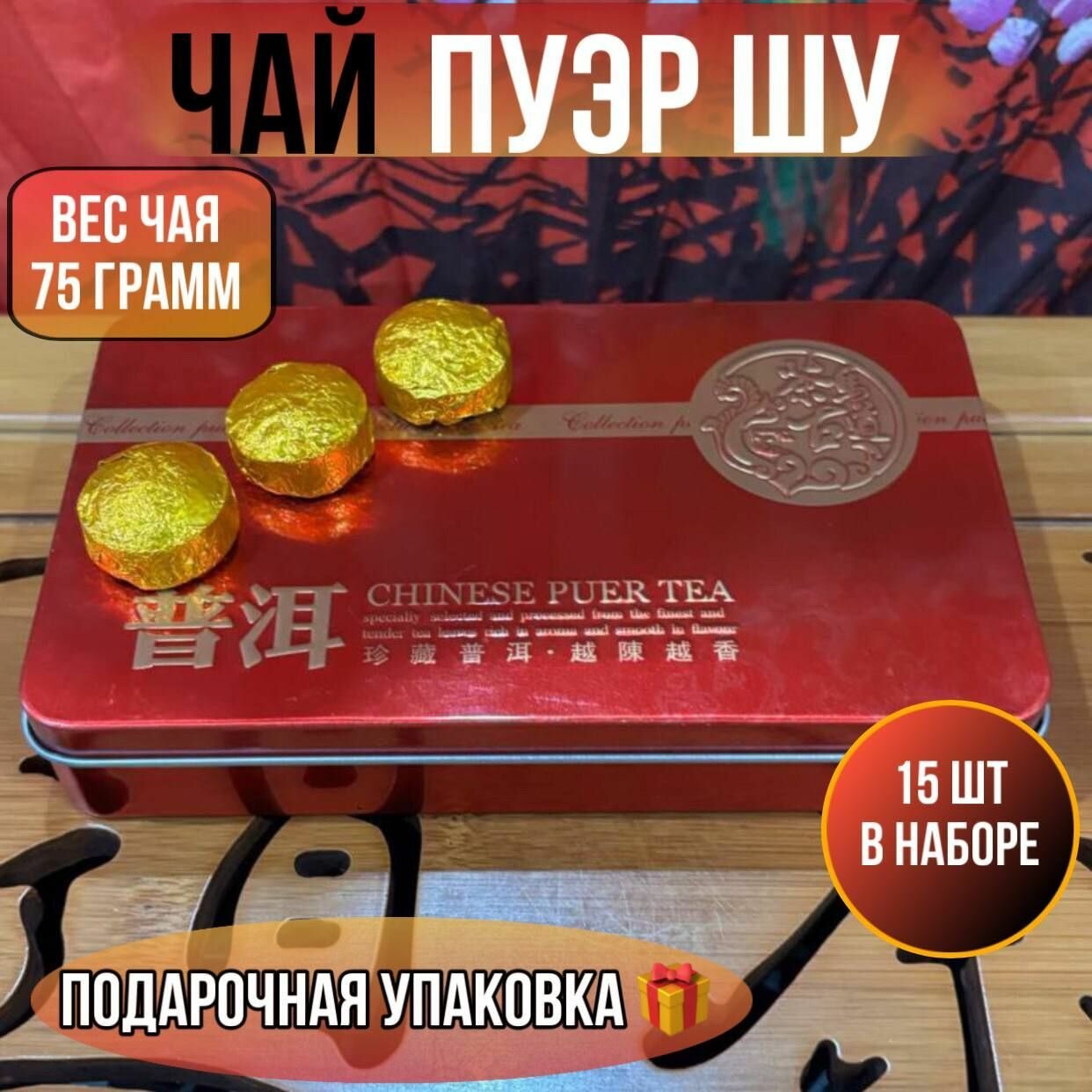 Отзывы на Чай Китайский Пуэр в подарочной коробке листовой бодрящий мини точа 15 шт - 75гр