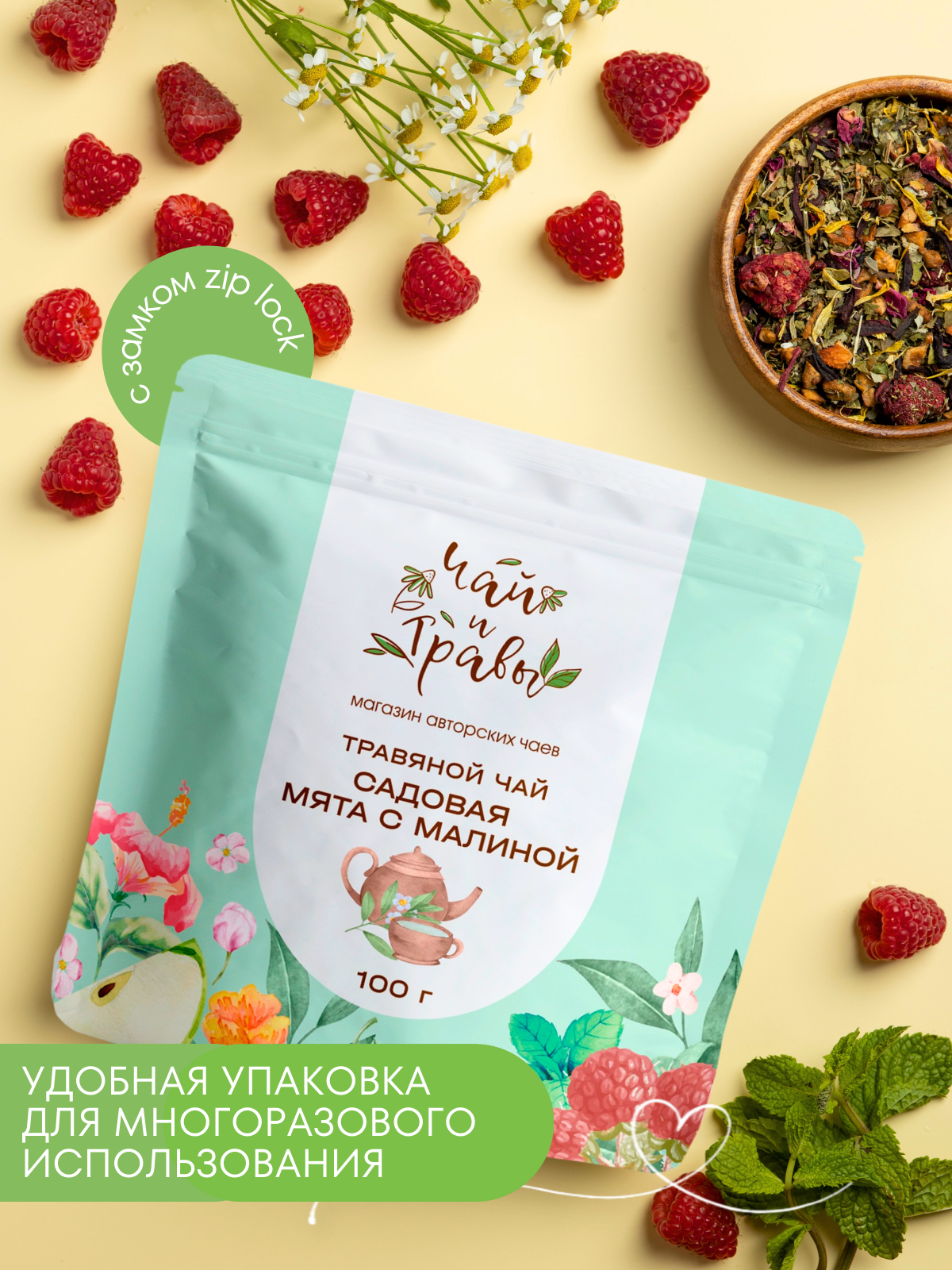 Чай травяной Чай и травы "Садовая Мята с малиной", 100г, крупнолистовой информация:
