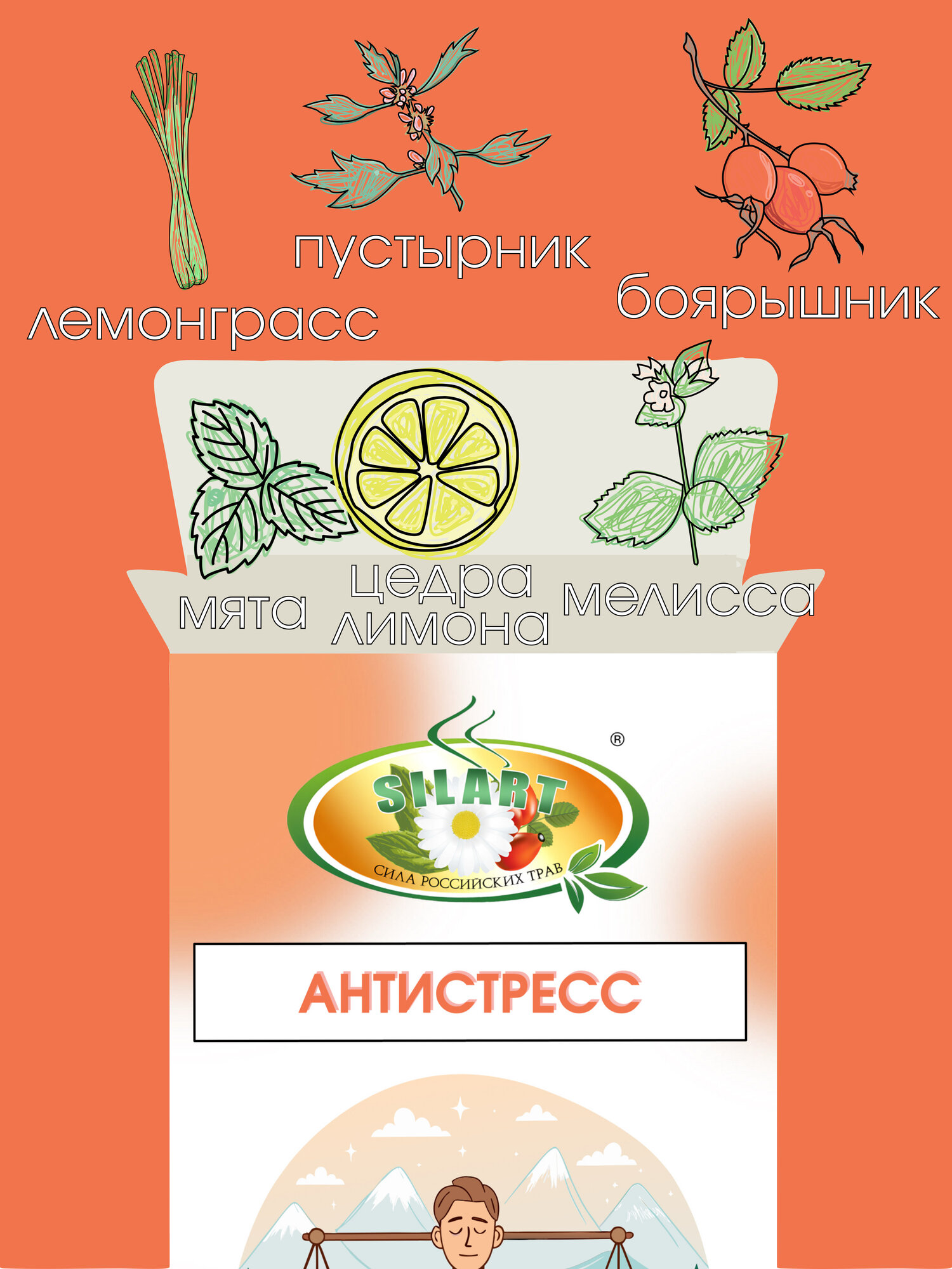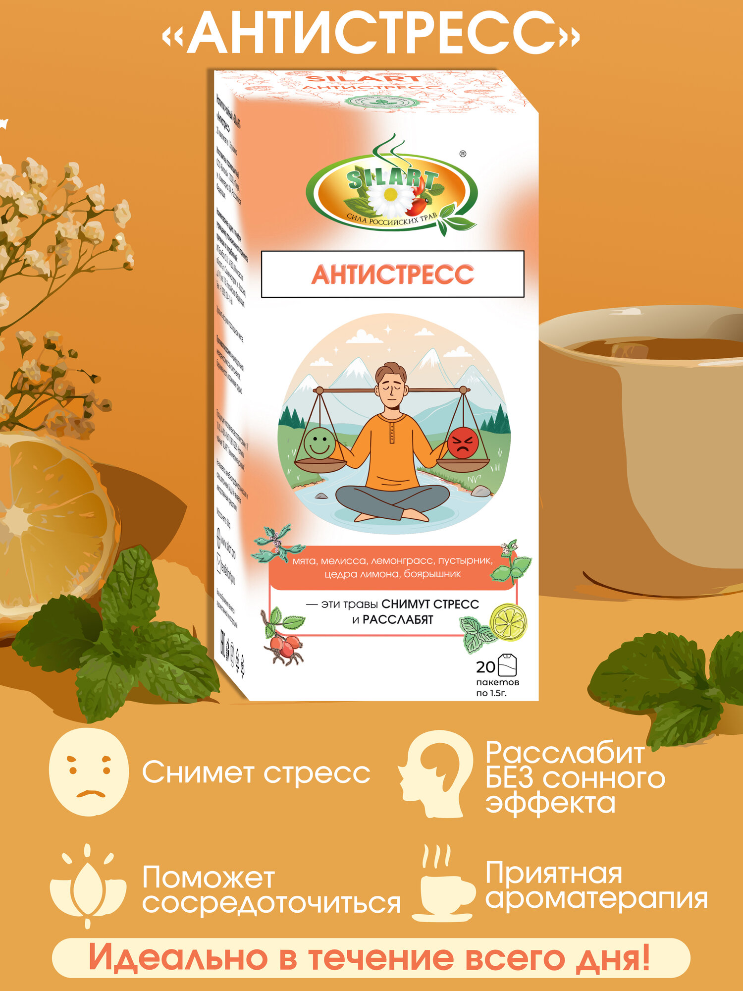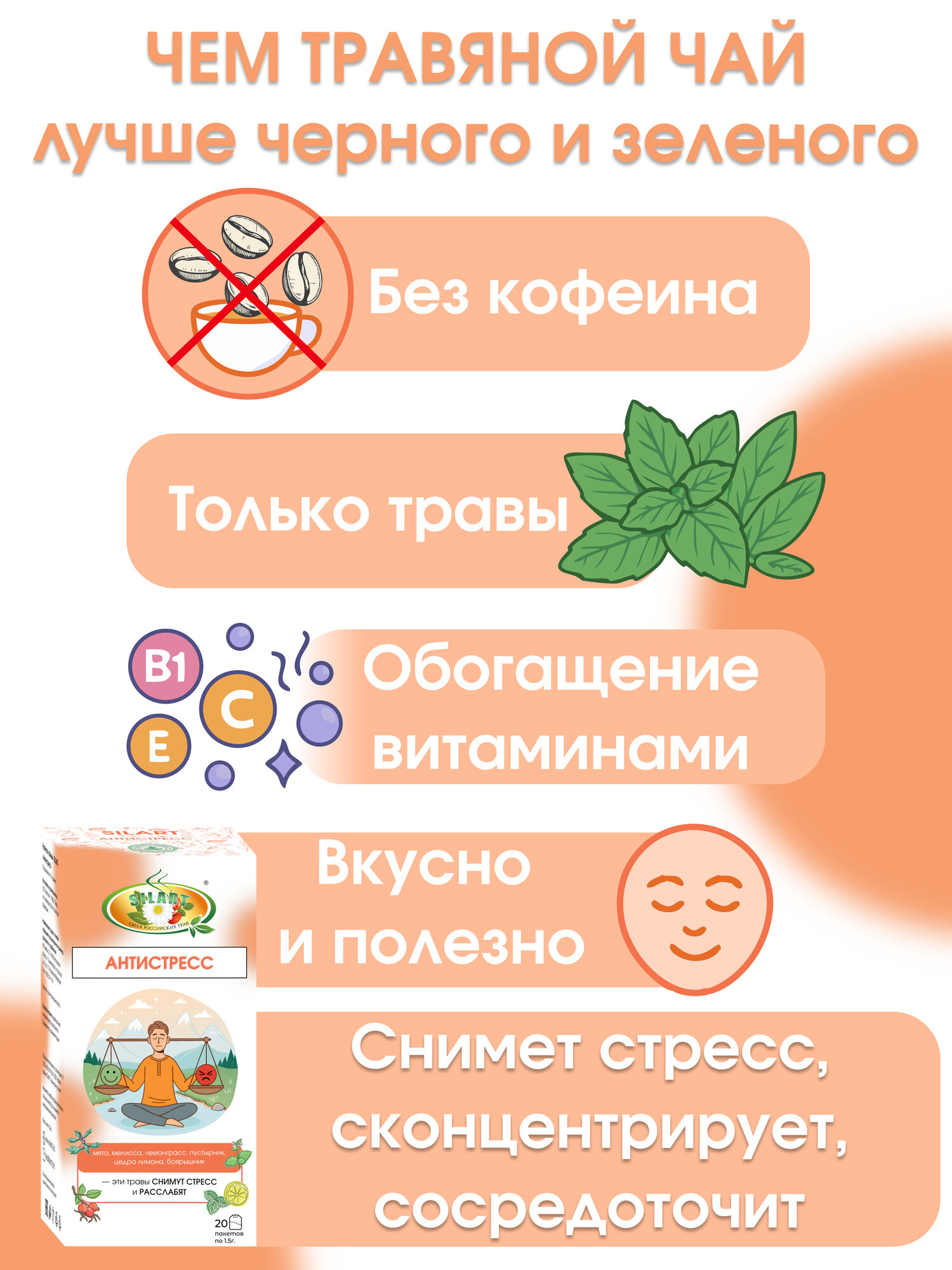 Чай в пакетиках, чай успокаивающий, «Антистресс», 20 фильтр-пакетов, чай травяной информация: