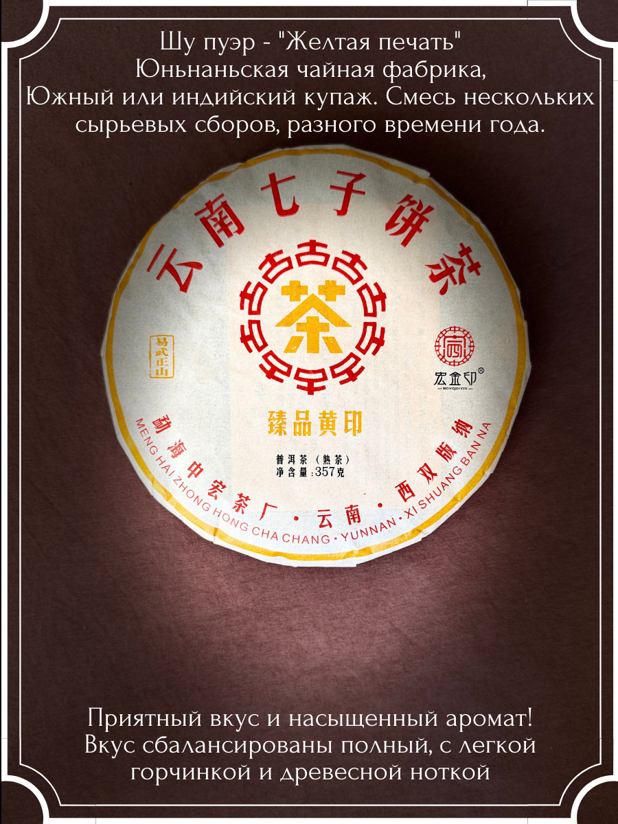 Шу пуэр "Желтая печать", китайский прессованный, ферментированный чай, блин 357 грамм информация: