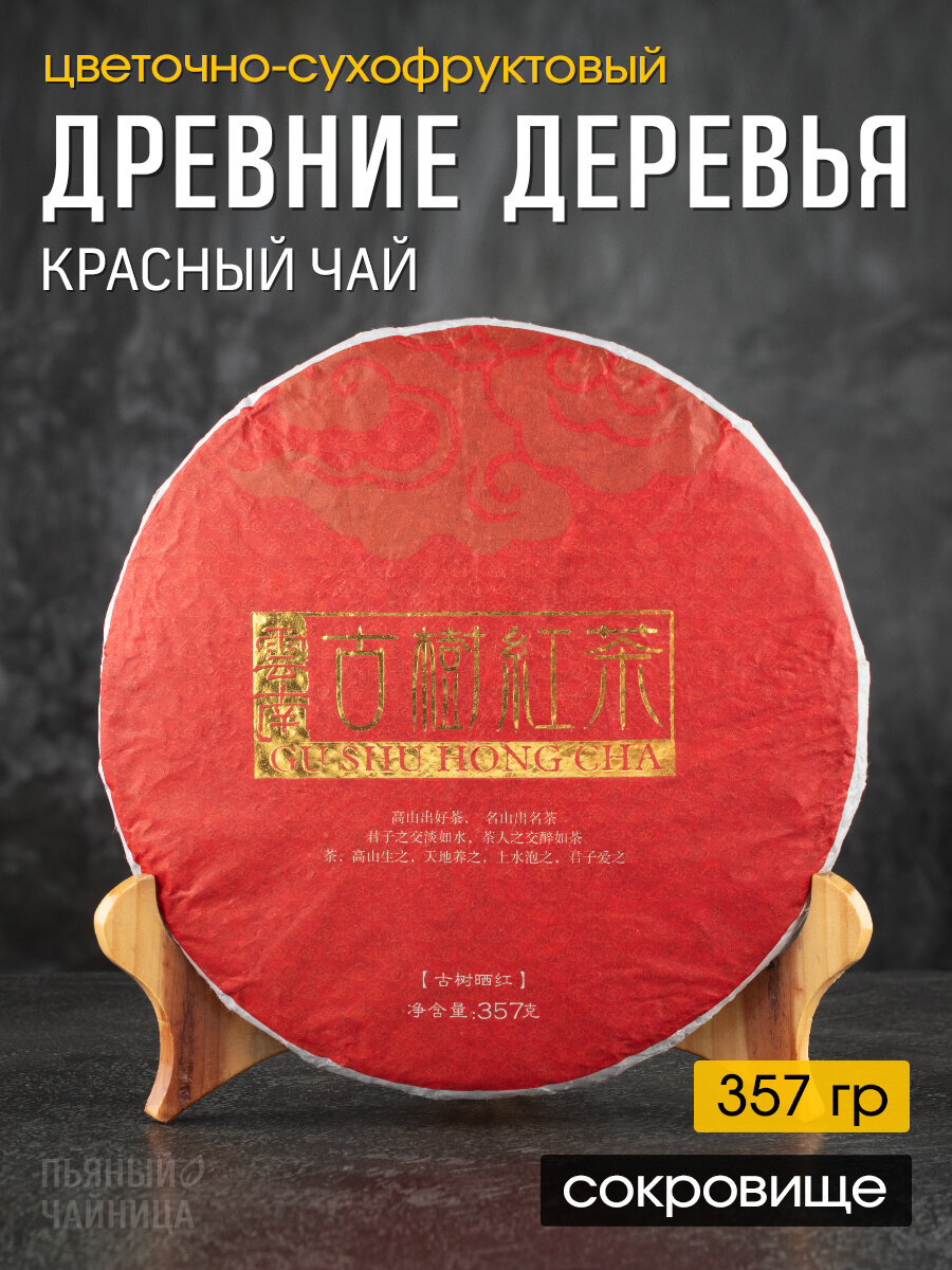 Чай китайский красный "Древние Деревья" прессованный блин 357 грамм, черный листовой шай хун для похудения информация: