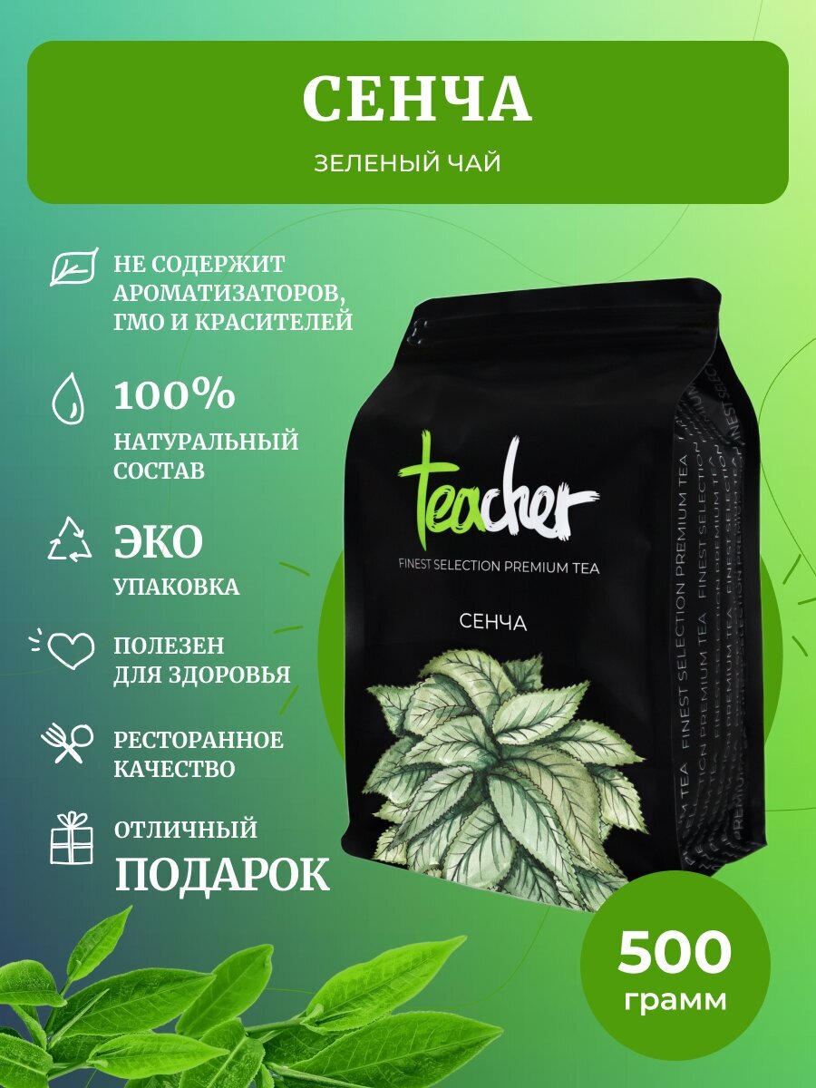Отзывы на Чай TEACHER Сенча 500 г зеленый листовой китайский крупнолистовой сорт премиум рассыпной весовой