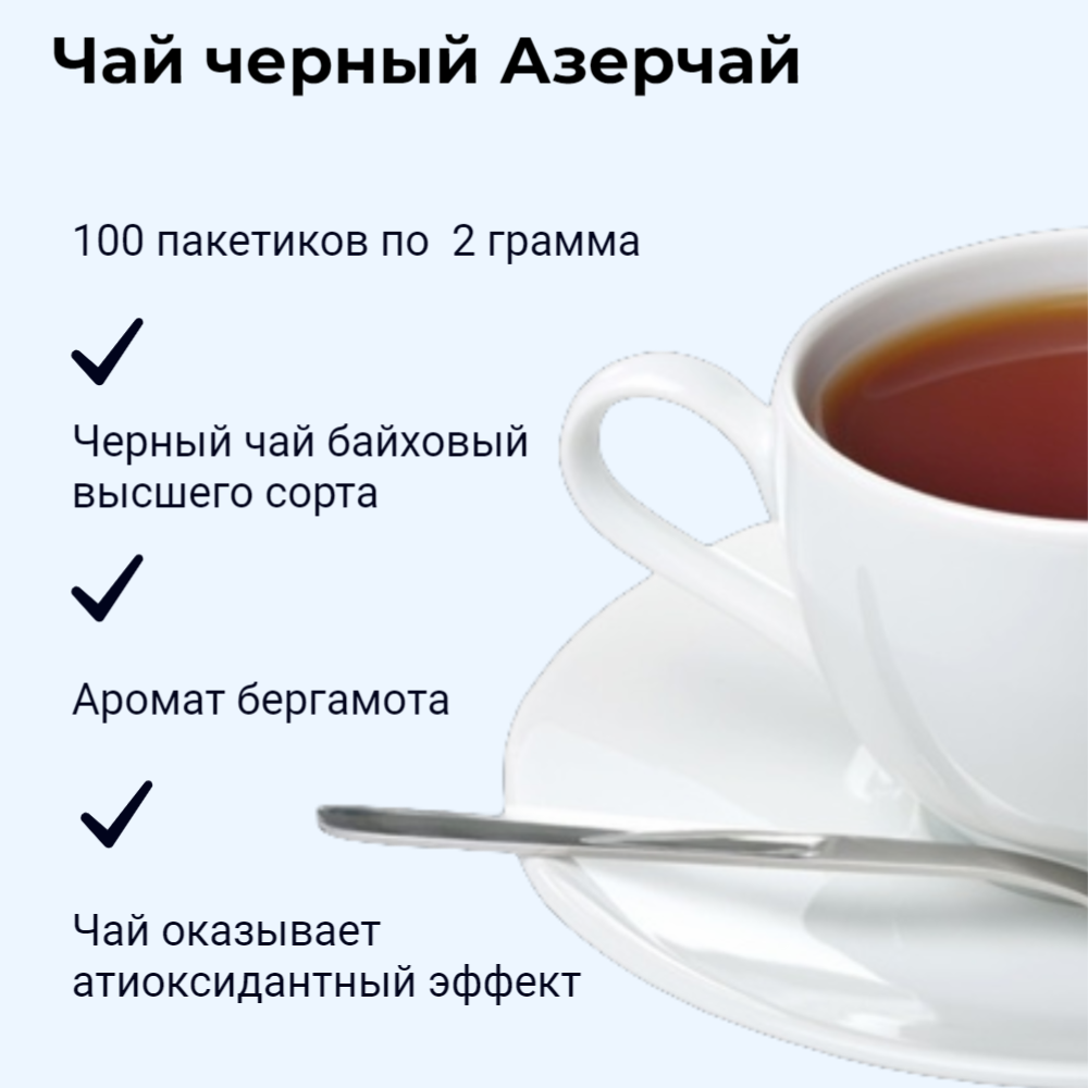 Чай Азерчай в пакетиках 100 штук черный с бергамотом, 2 упаковки информация: