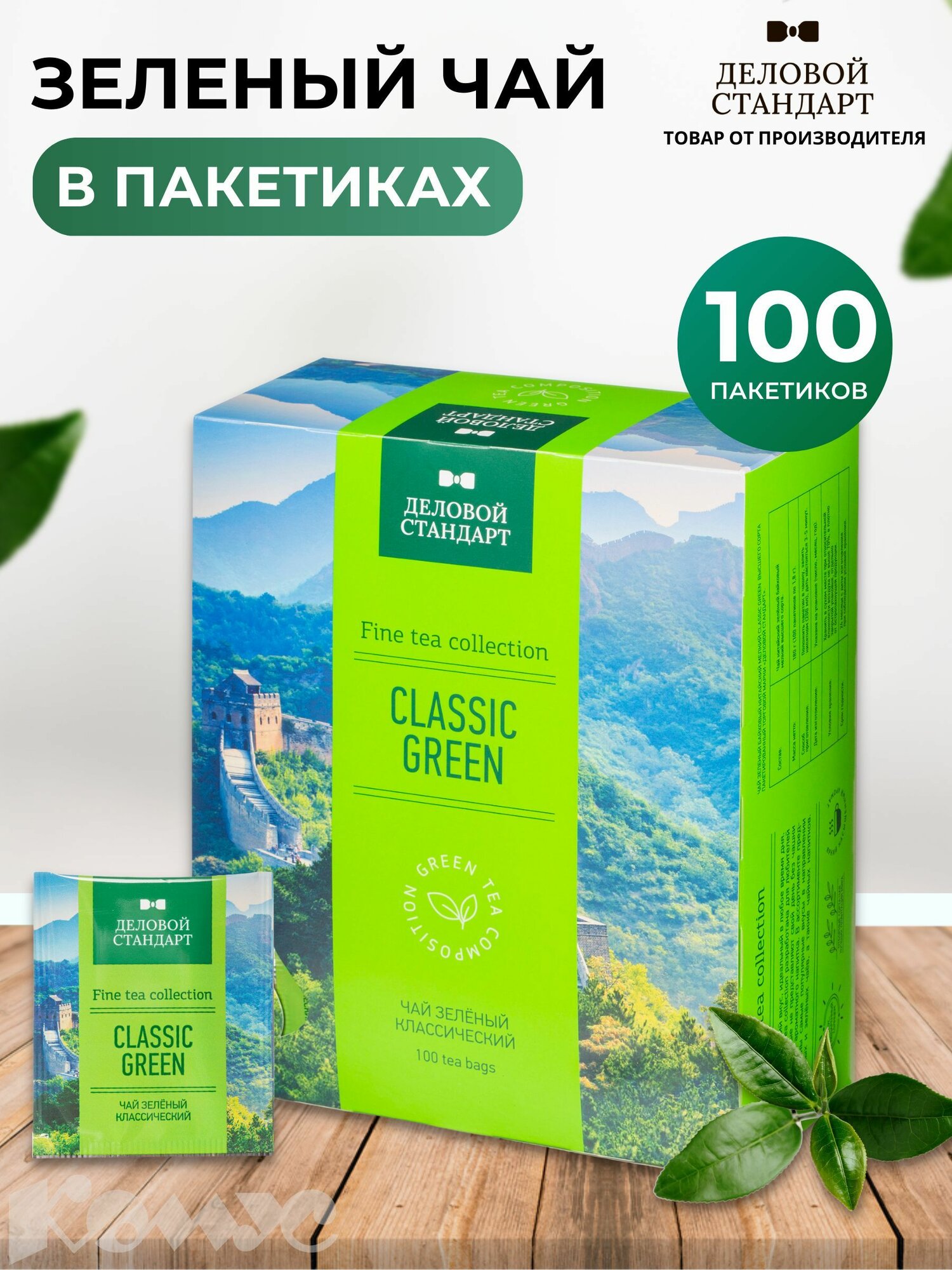 10 цен на Чай зеленый Деловой Стандарт Classic green,100 пакетиков
