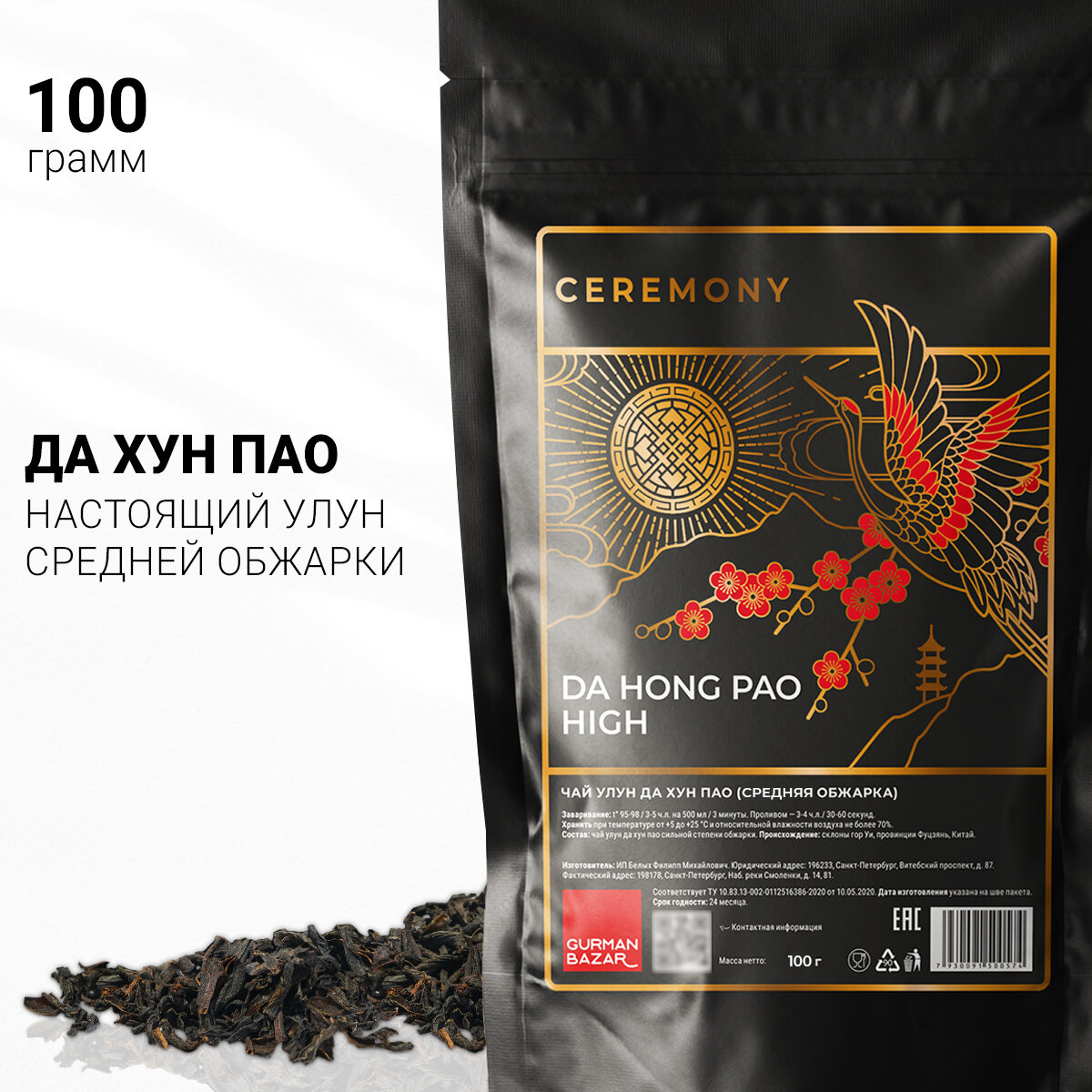 Настоящий ДА ХУН ПАО средней степени обжарки 100 г Китайский Улун Чай Черный Листовой Рассыпной Ceremony информация: