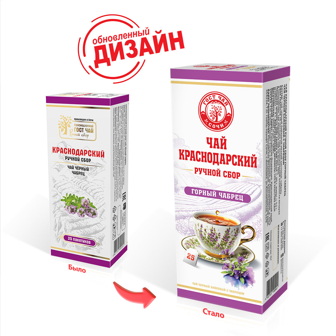 Отзывы на Краснодарский чай ручной сбор 25 пакетиков набор 3 пачки черный Горный Чабрец