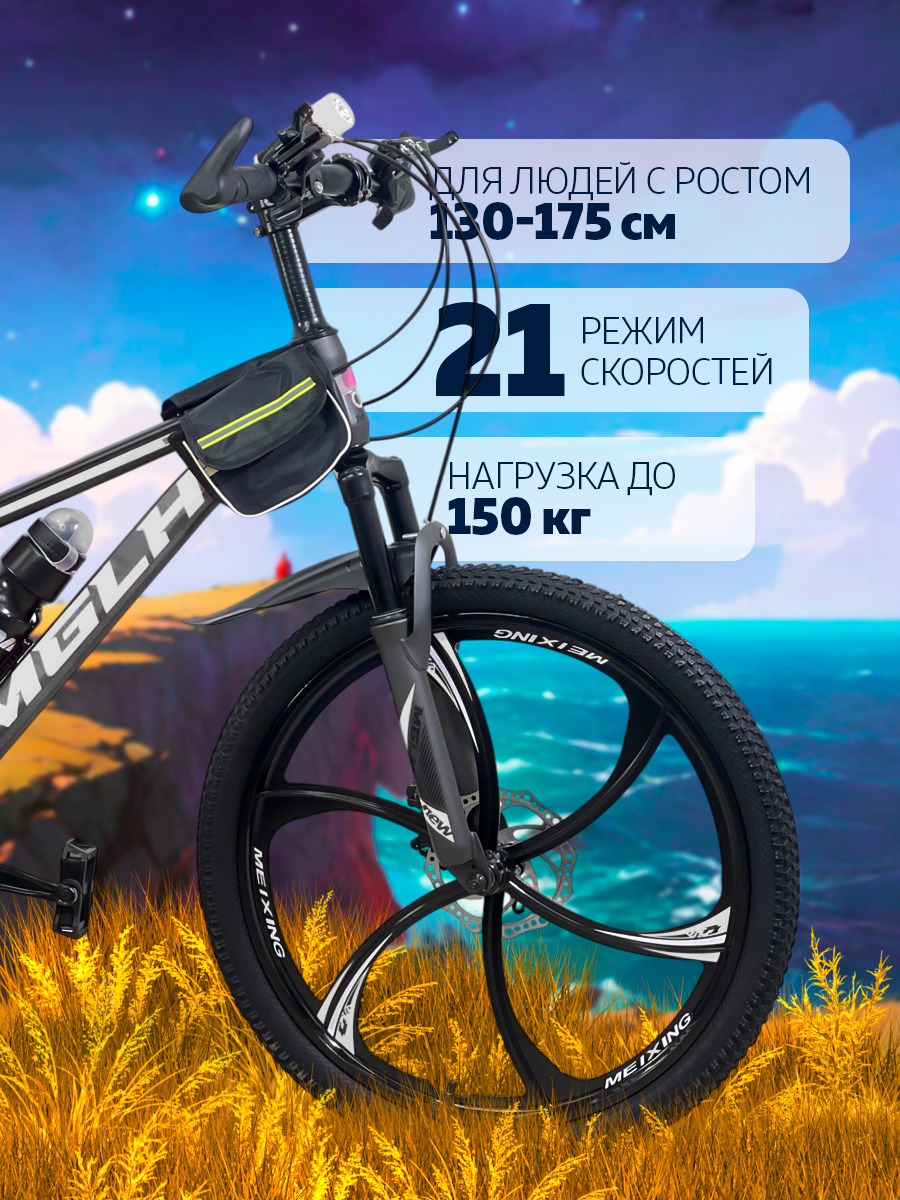 Отзывы на Горный велосипед скоростной, колёса 24", рама - 14", черно-белый