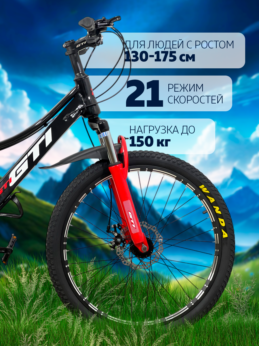 Горный велосипед QISHI 21s 24", универсальный, 21 скоростная система, рама 14", черно-красный информация: