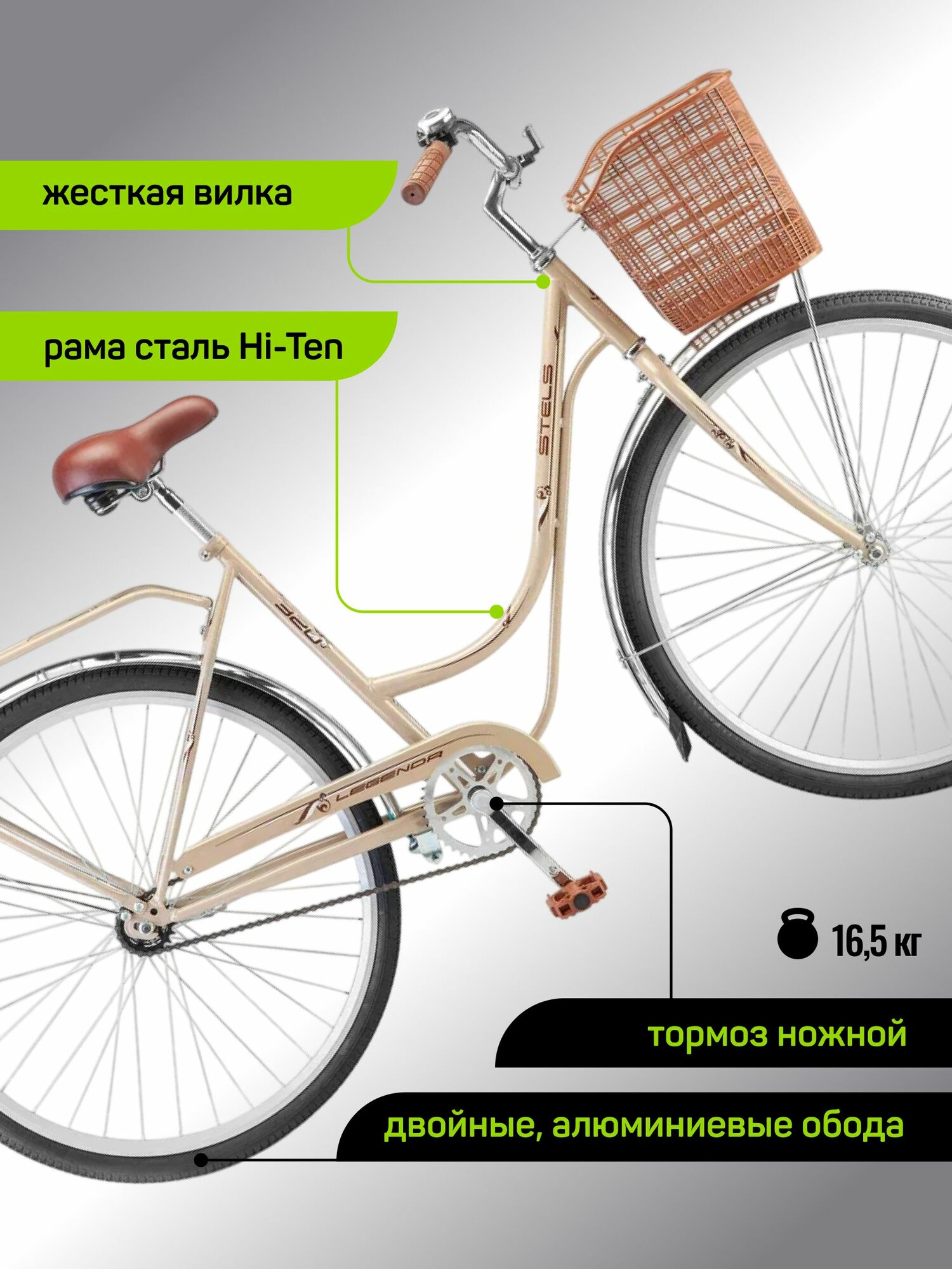 10 цен на Велосипед женский городской с корзиной STELS, Legenda-320, стальная рама 20, колеса 28, 1 скор. бежевый, на рост 155-190