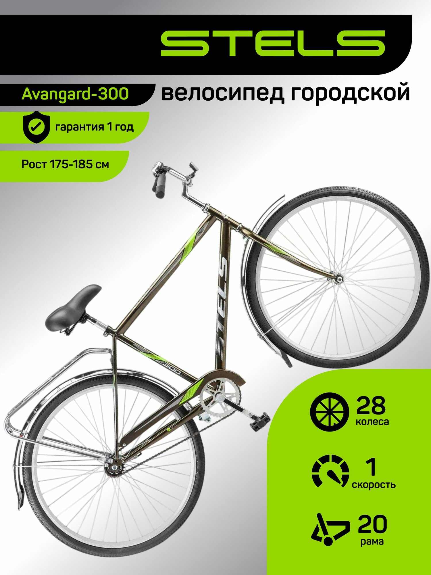 Велосипед городской STELS, Avangard 300 28C Z010, рама 20, колеса 28, 1 скор. Оливковый, на рост 175-185 велик женский мужской информация:
