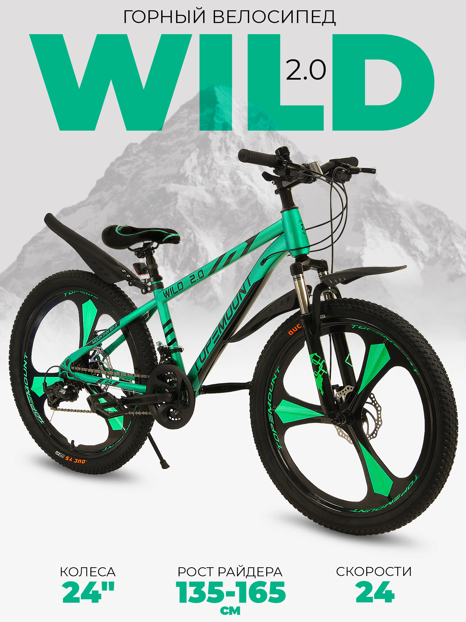 Велосипед горный литые диски "Wild" 24, 13.5 рама, дисковые тормоза, сталь, 24 скорости, зеленый информация: